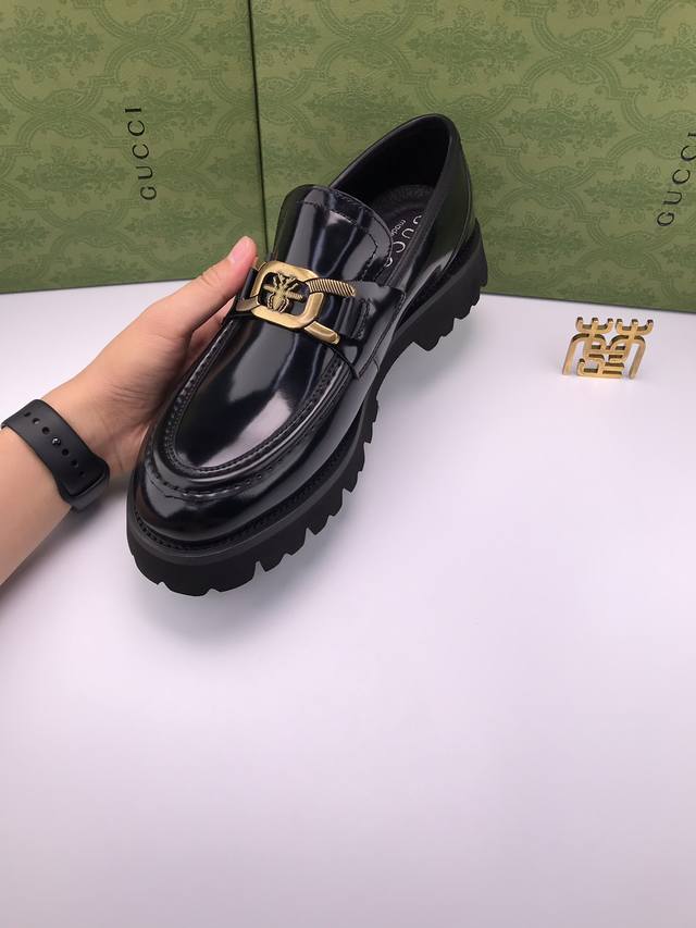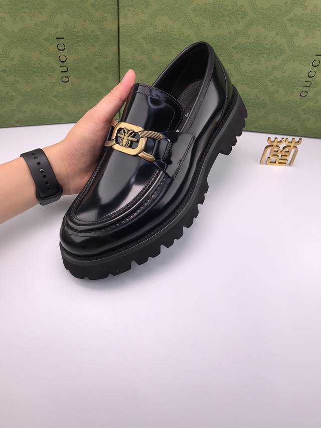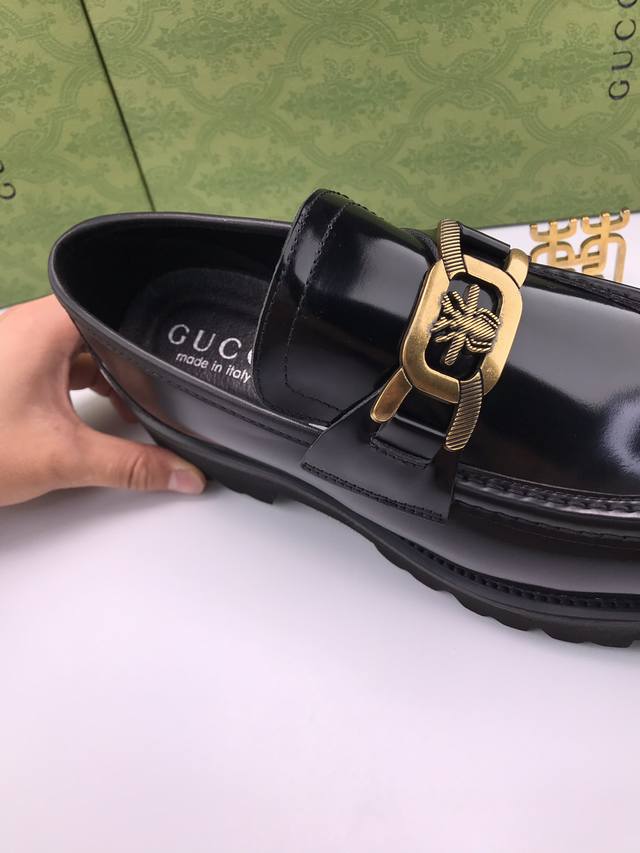 / GUCC* 极轻发泡厚底 亮黑开边珠 商务男鞋 亮面开边珠 金属亮黑色 质地柔软 舒适耐穿 不易爆皮脱层 高档亮泽 优质五金扣 羊皮内里 发泡厚底 发泡橡胶 轻