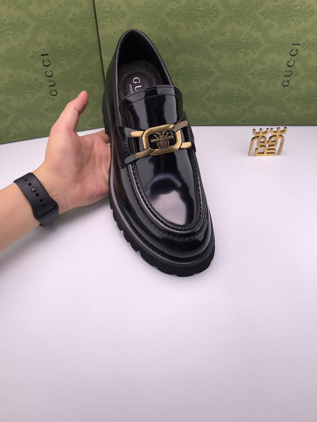 GUCC* 极轻发泡厚底 亮黑开边珠 商务男鞋 亮面开边珠 金属亮黑色 质地柔软 舒适耐穿 不易爆皮脱层 高档亮泽 优质五金扣 羊皮内里 发泡厚底 发泡橡胶 轻且软 减震 耐磨 增高 脚感好 真材实料 品质三包 全套包装 38-44码