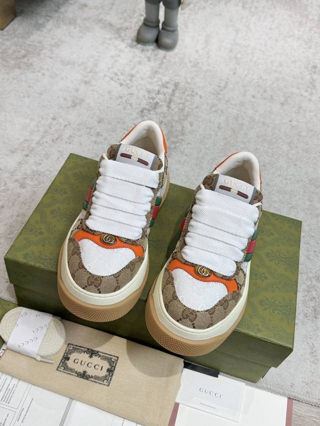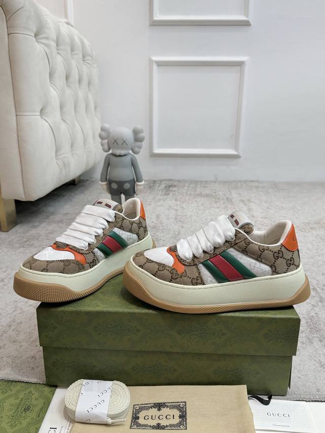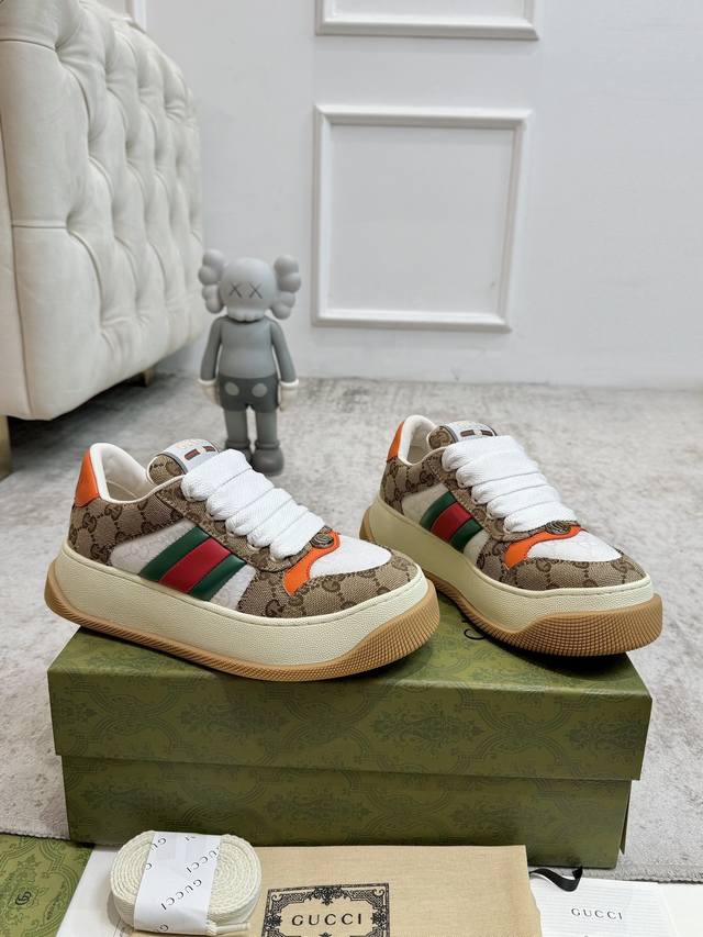 gucci最新款胖嘟嘟厚底脏脏鞋~~情侣款休闲鞋,6Cm增高鞋~~