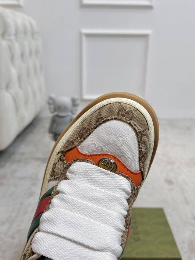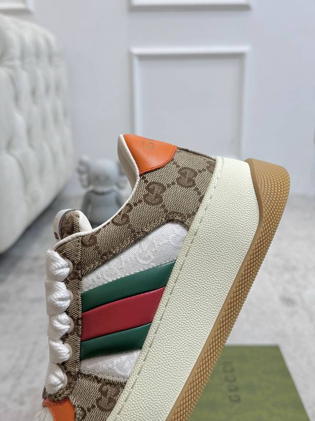 gucci最新款胖嘟嘟厚底脏脏鞋~~情侣款休闲鞋,6Cm增高鞋~~ 鞋面擦色牛皮拼接经典双g布面料,毛巾布里细腻吸汗透气,垫脚乳胶注塑一体,6Cm厚tpu双色底