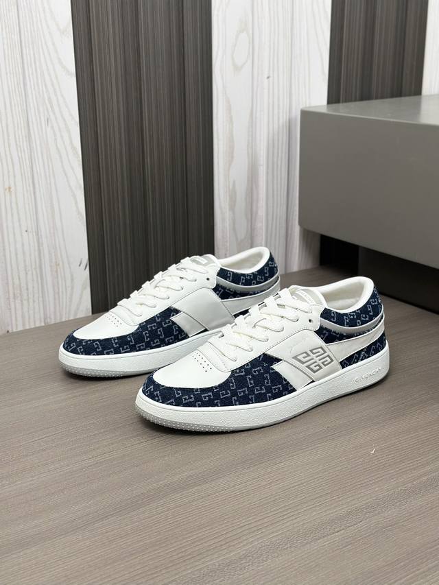 gv *Y~全新giv 1男士低帮休闲板鞋,进口头层牛皮拼原版牛仔帆布面料,透气舒适,舌压印4G Logo刺绣,上脚效果帅气有型,简约时尚百搭精品!