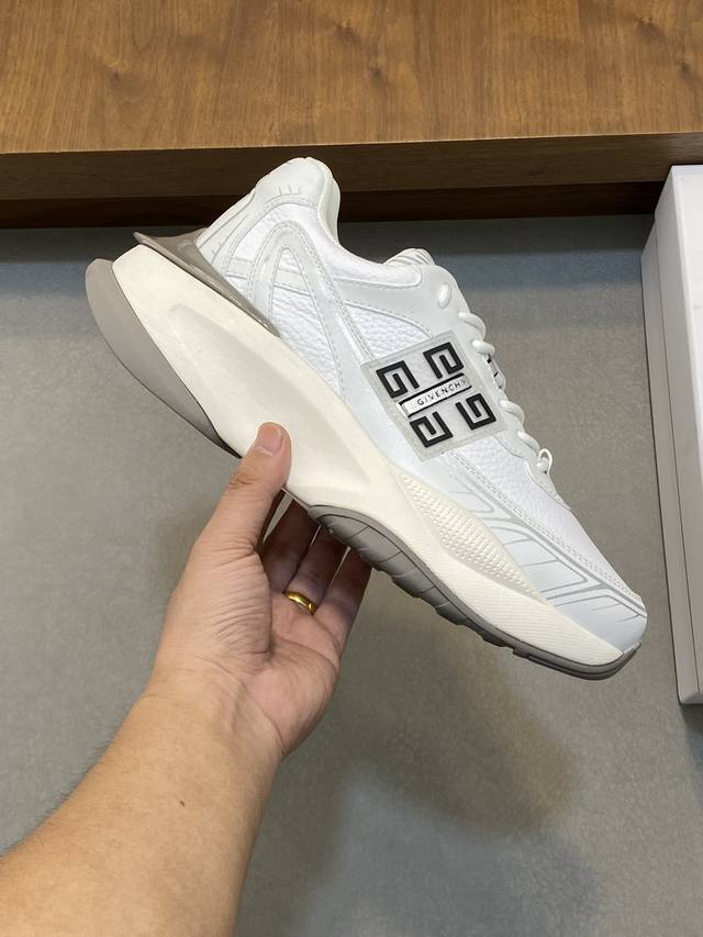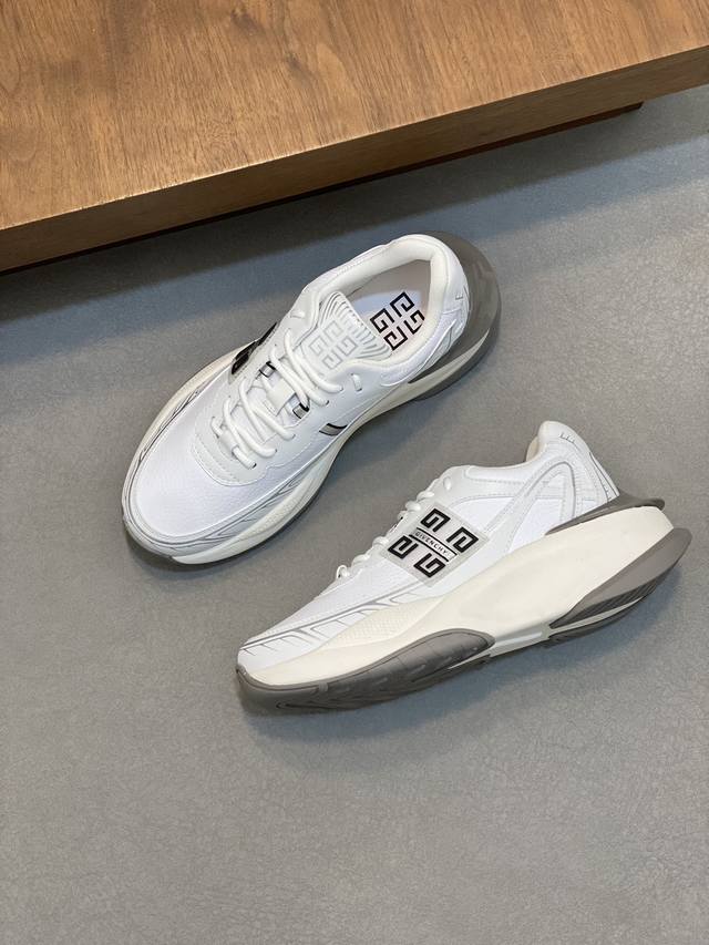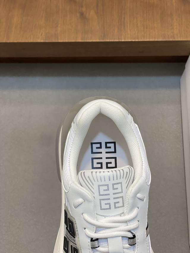 Gv *y~全新GIV 1男士厚底增高休闲运动鞋,鞋面高品质小牛皮拼接制成!上脚效果帅气有型,增高4CM,提升气场,鞋身撞色拼接设计,饰有4G LOGO标志和立体GIVENCHY标志。轻质TPU发泡大底,脚感轻便舒适!