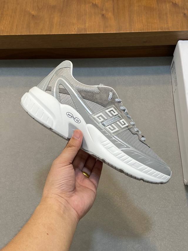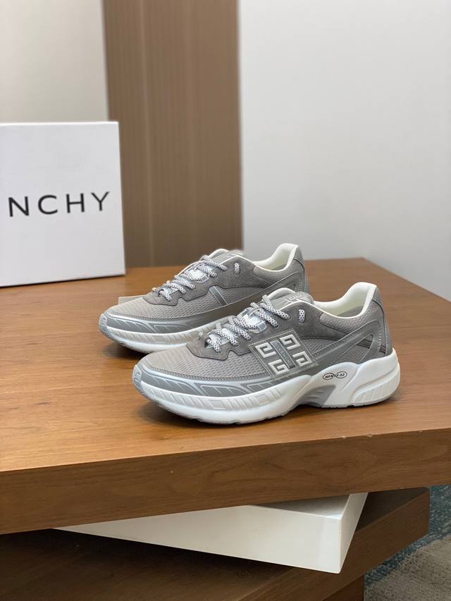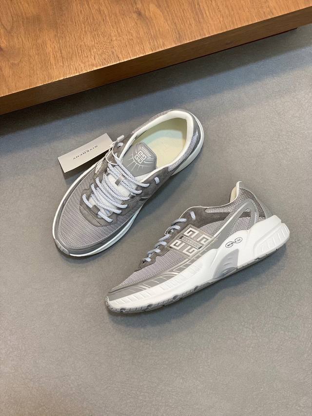Gv *y~全新GIV 1男士厚底增高休闲运动鞋,鞋面高品质小牛皮拼接透气布面制成!上脚效果帅气有型,增高4CM,提升气场,鞋身撞色拼接设计,饰有4G LOGO标志和立体GIVENCHY标志。轻质TPU发泡大底,脚感轻便舒适!