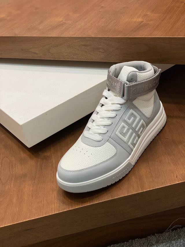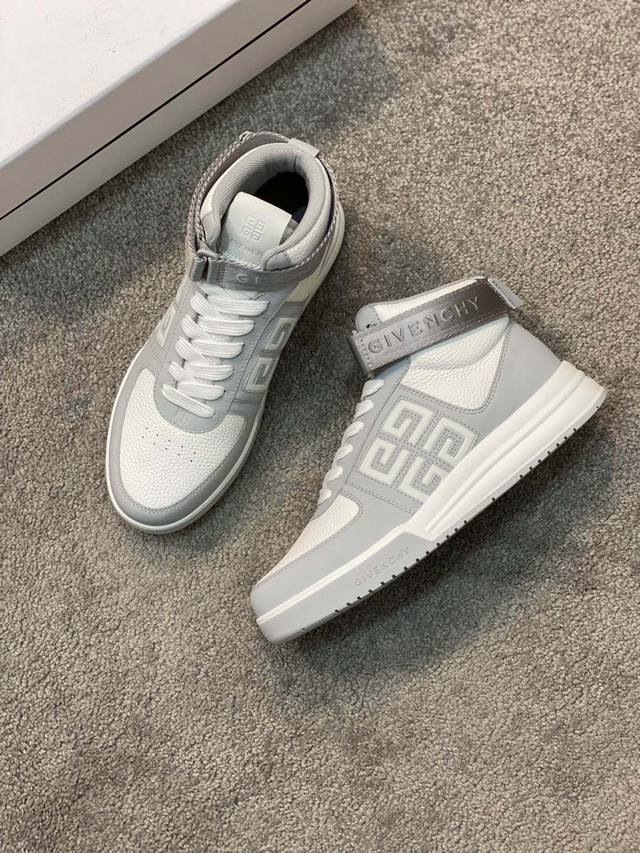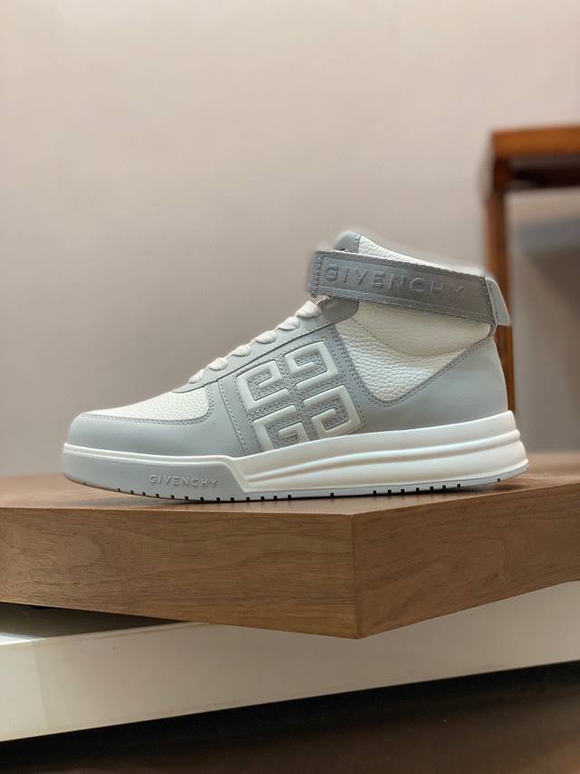/ Gv *y~全新GIV 1男士高帮慢跑运动鞋,进口头层牛皮,鞋面冲孔设计,透气舒适,舌压印4G LOGO刺绣,TPU轻型鞋底,上脚效果帅气有型,增高提升气场,简