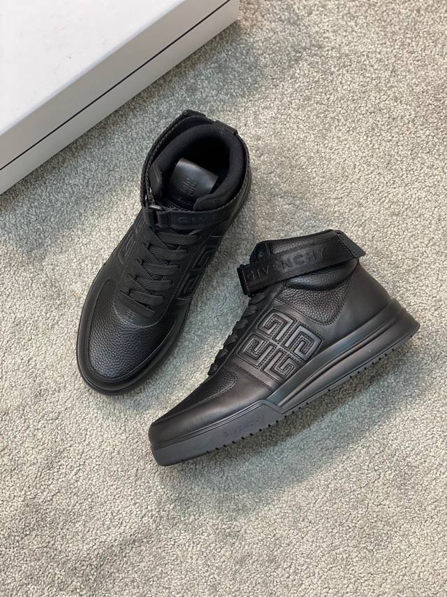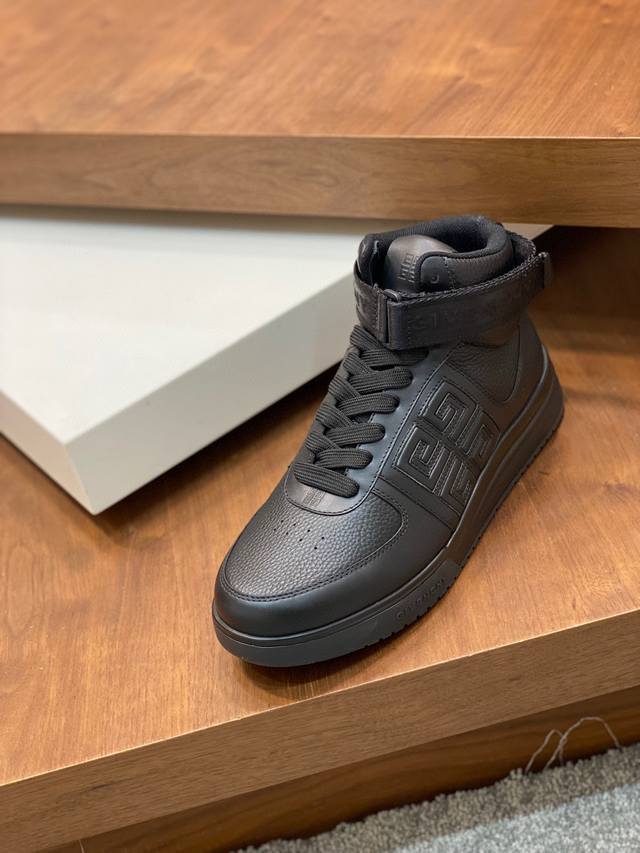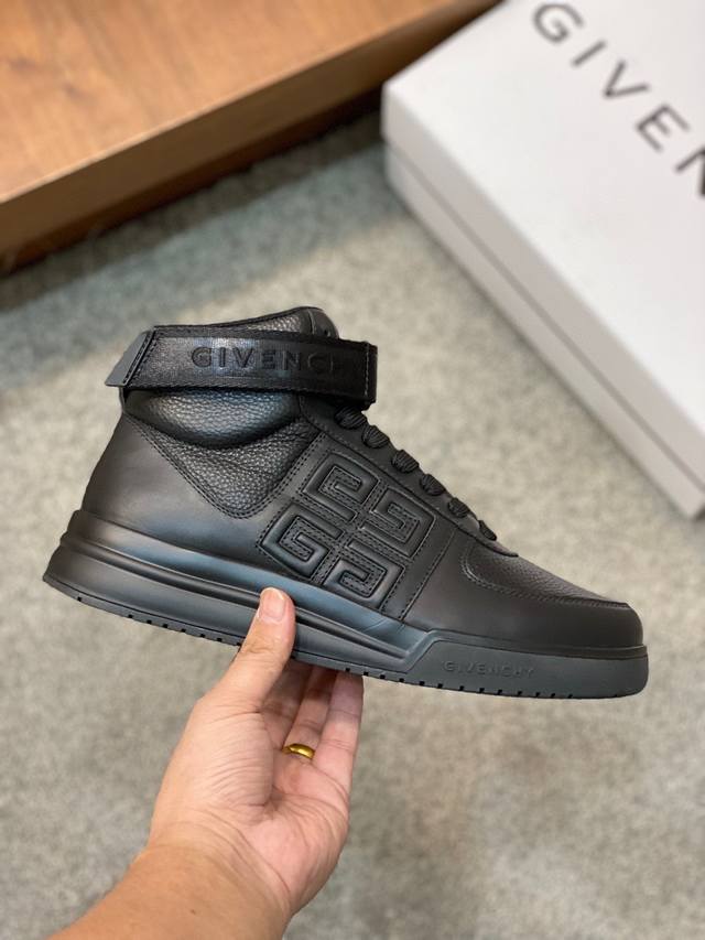 / Gv *y~全新GIV 1男士高帮慢跑运动鞋,进口头层牛皮,鞋面冲孔设计,透气舒适,舌压印4G LOGO刺绣,TPU轻型鞋底,上脚效果帅气有型,增高提升气场,简
