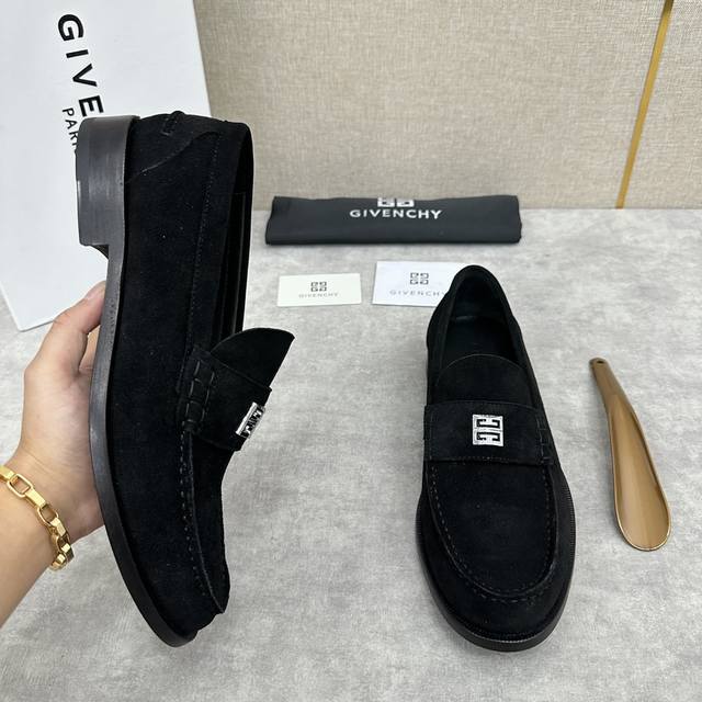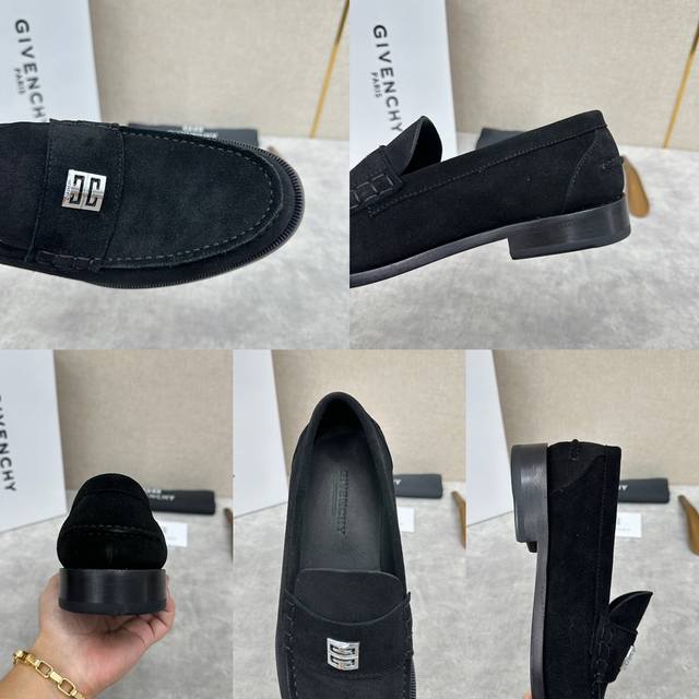 Gvx 新品 纪梵*希 男士乐福鞋皮鞋 采用进口牛皮 开边珠亮 翻毛皮皮打造 一脚蹬便鞋 品牌4G五金扣贯穿鞋面 一脚蹬穿着 进口水染牛皮内里 牛皮垫脚原版真皮