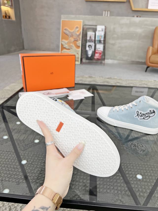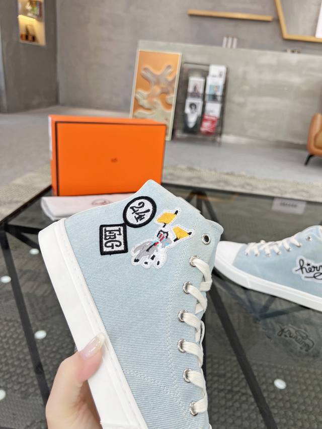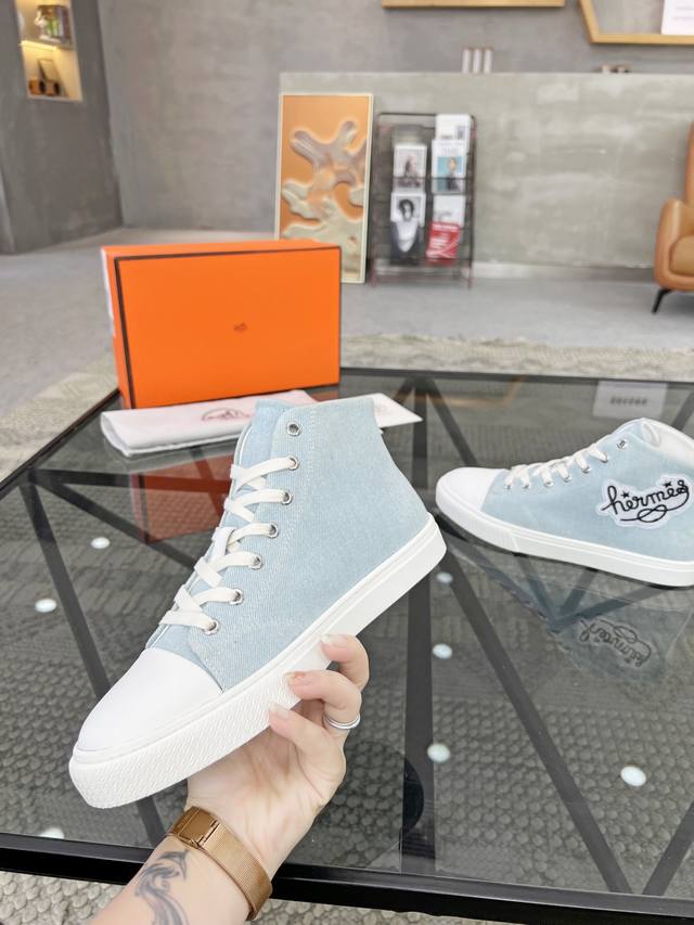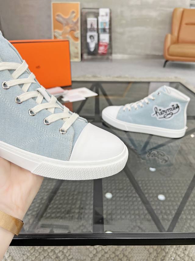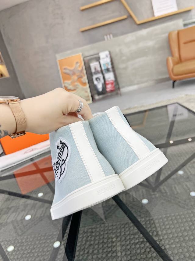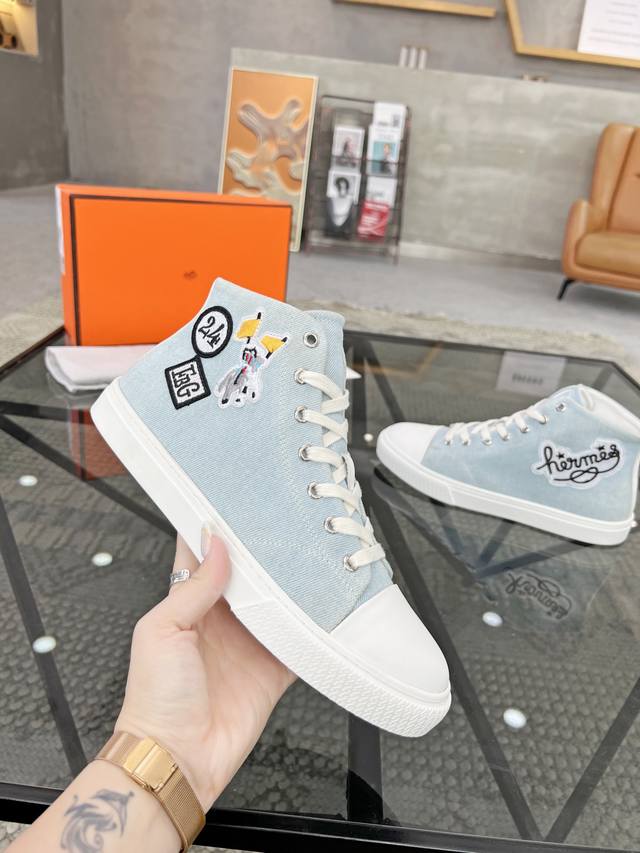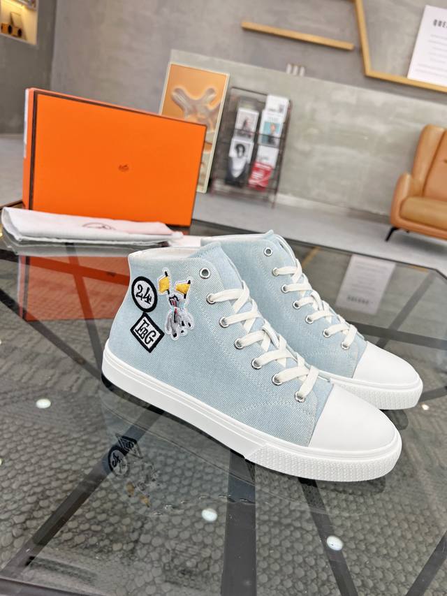 H 顶级代购 爱 炸街男神新品高帮靴子来袭超人气运动爆款专柜新款,原厂配置意大利进口牛仔布面料,高品质拼接工艺,经典的外观搭配新底更加潮达人,进口水染牛皮内里垫,透气舒适 鞋底:原厂特供原版底超级舒适,原厂跟单货高品质,可随意进出专柜,欢迎对比,码数 39-44 订38 45