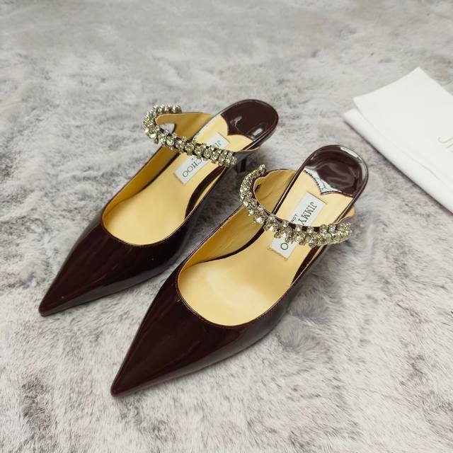 / JIMMY CHOO 新款漆皮水钻链条系列 面料:进口牛漆皮 内里:进口小羊皮 大底:进口意大利真皮大底 码数:35~39 34、40、41、42定制不退换 跟