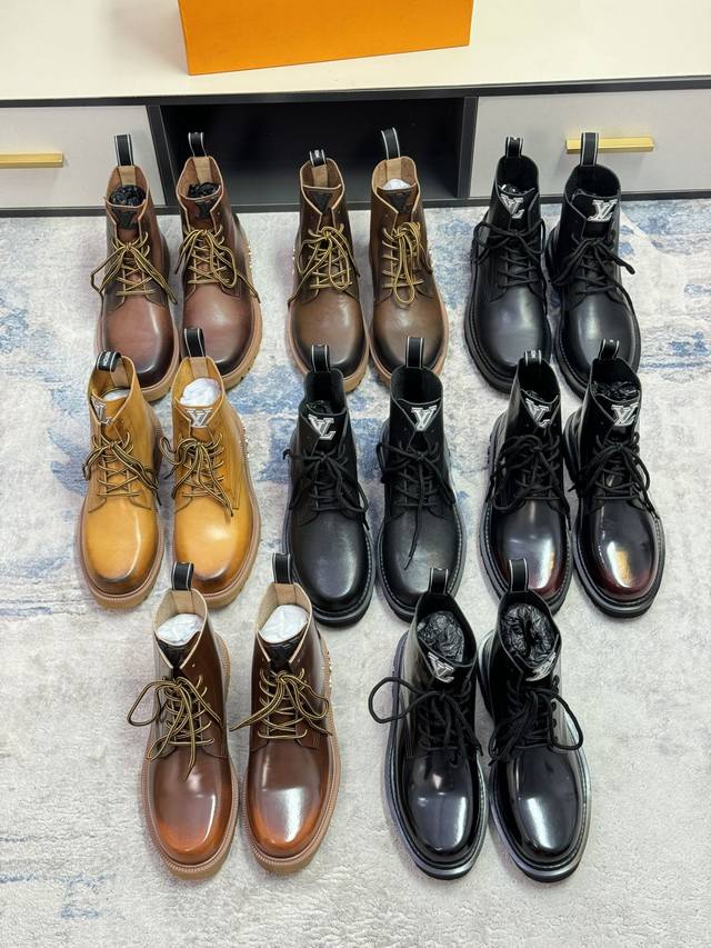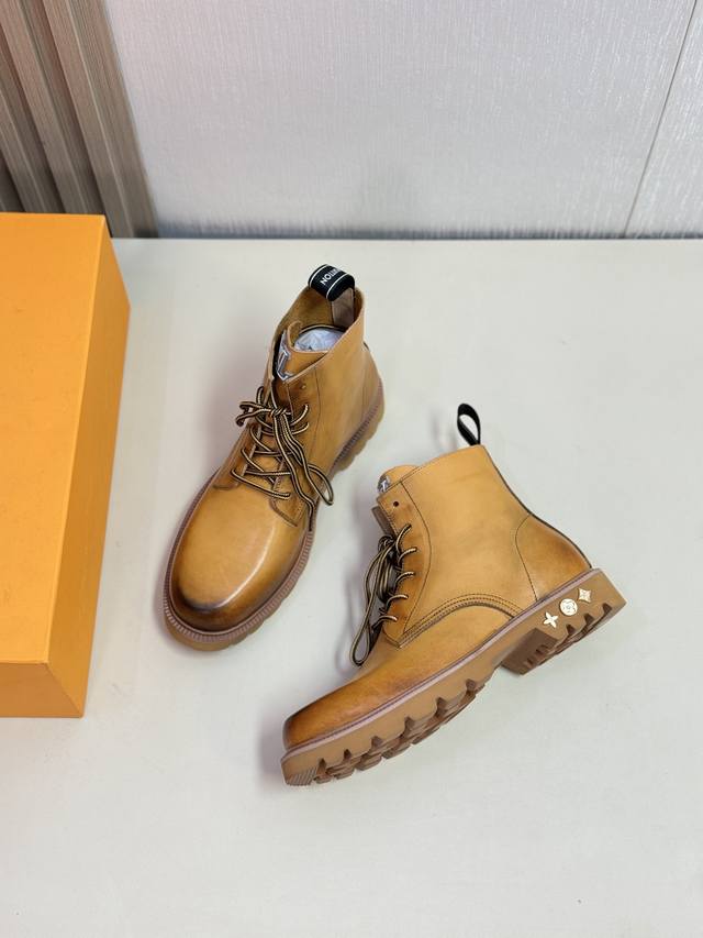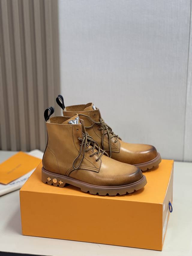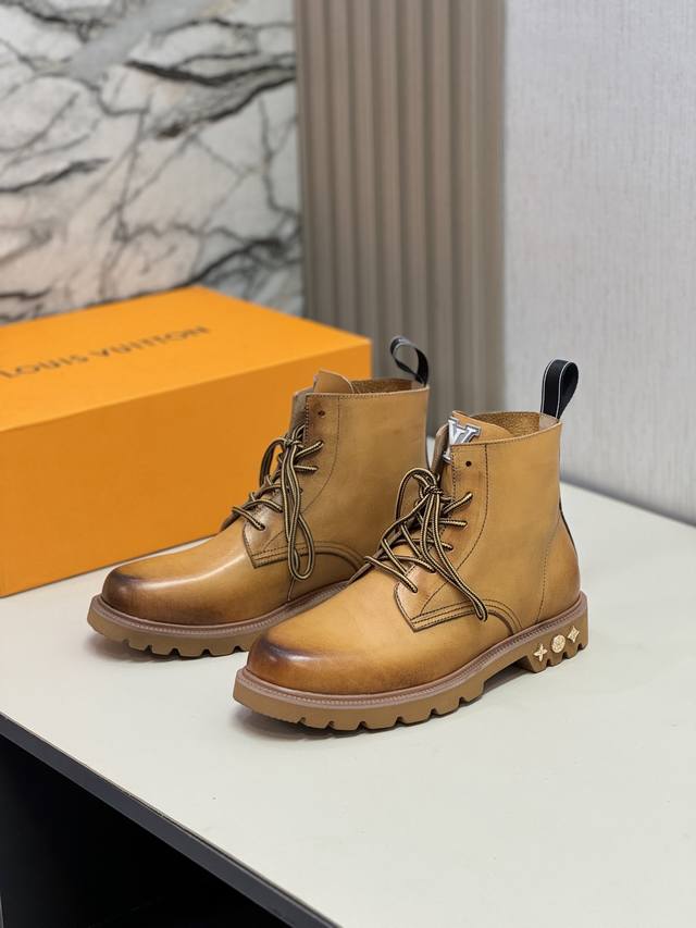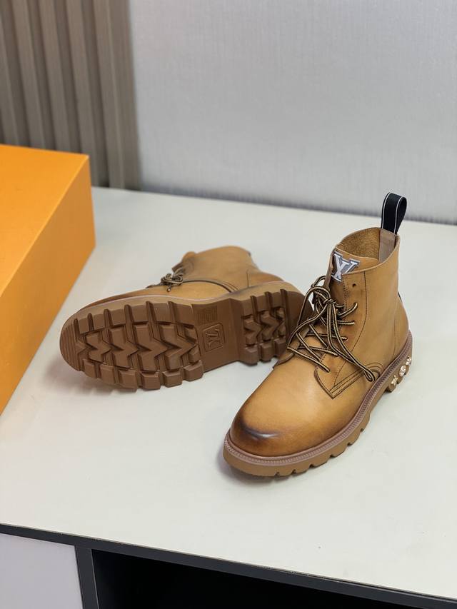 LV高帮靴子系列专柜最新原版正装皮鞋 代购级别 进口头层原版牛皮 开边珠牛皮无内里设计,牛皮垫脚。原版大底 纯手工制作,细节决定品质!!