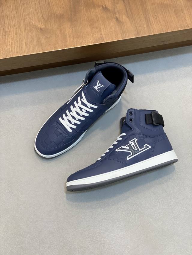 L 新品男士高端休闲运动靴、选用进口头层牛皮丝印品牌Lougou,原版大底,耐磨舒适,Monogram Lougou点缀橡胶外底,透气皮内里,百搭经典款式!