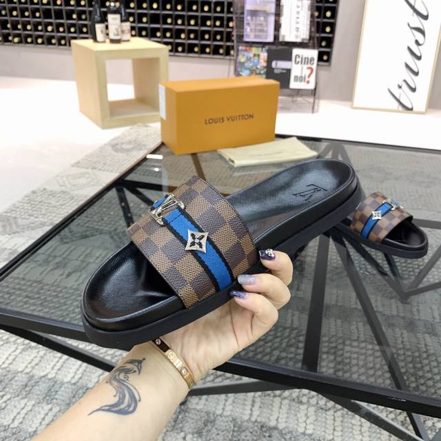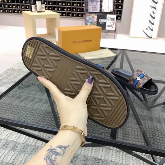 L 顶级代购路家爆款男士拖鞋鞋 专柜同步 鞋面意大利进口小牛皮,牛皮垫脚,鞋底:原厂特供原版底,独家活动成型底超级舒适,原厂跟单货,高品质,可随意进出专柜,欢迎对比,码数 38-45