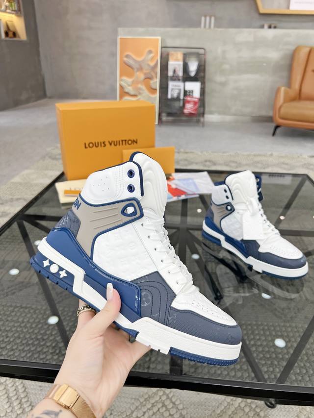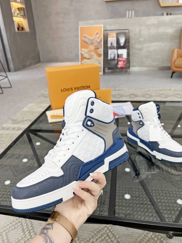 / L 顶级代购 路 炸街男神高帮靴子新品来袭,男士超人气运动爆款专柜新款,原厂配置意大利进口牛皮面料,复杂工艺霸气的外观搭配新底更加潮达人,进口透气网布内里垫,透