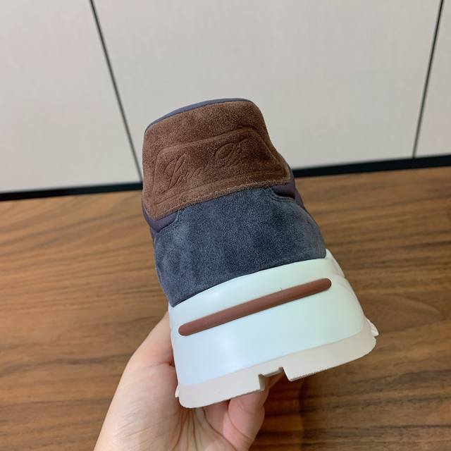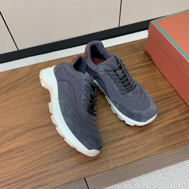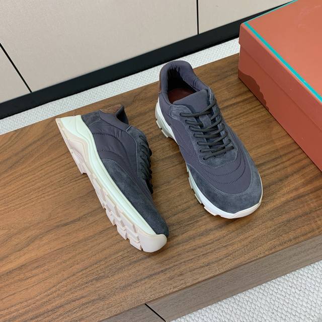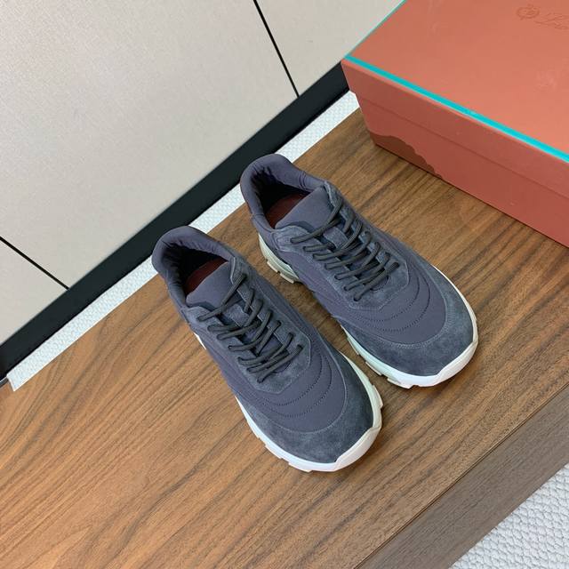 Loro Piana 男款休闲运动鞋 简约时尚,鞋面采用牛反绒拼布 羊皮垫脚 定制大底码数:39-46 45、46定制