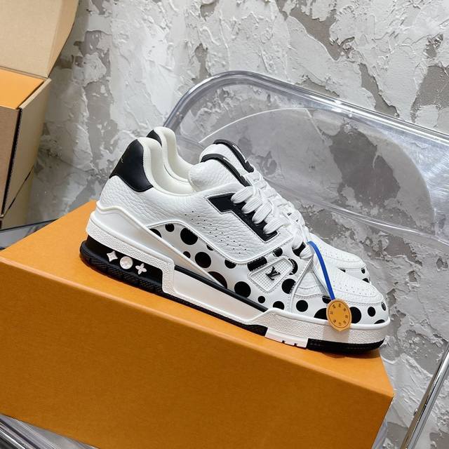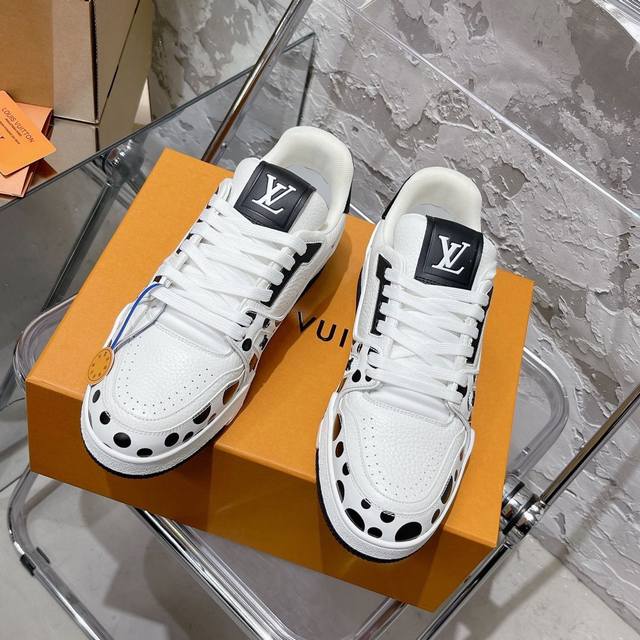 / LOUI* VUITTO* 高端顶级代购尖端炸街爆款男士运动板鞋 专柜同步 鞋面意大利进口原版牛皮,缤纷色彩复杂工艺品,垫脚聚米微料加透气英伦网布网布内里,脚感