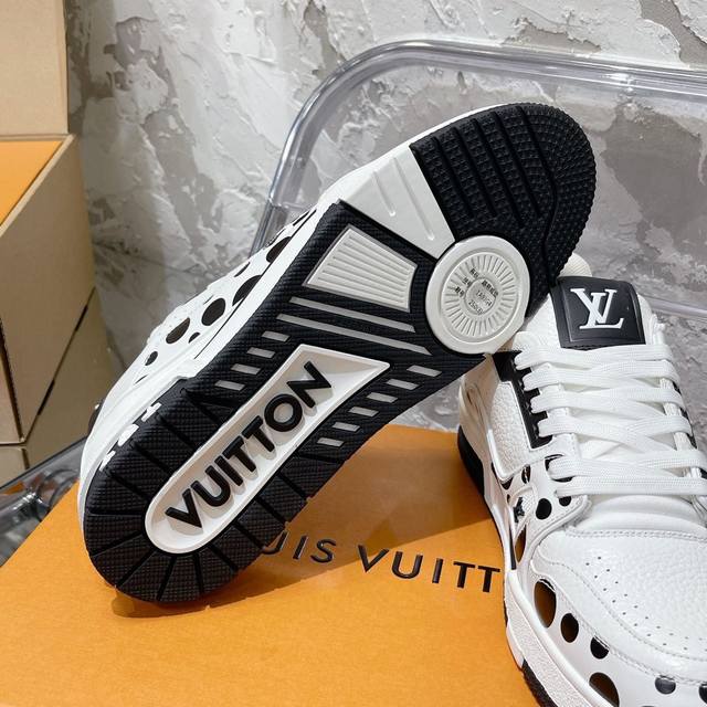 LOUI* VUITTO* 高端顶级代购尖端炸街爆款男士运动板鞋 专柜同步 鞋面意大利进口原版牛皮,缤纷色彩复杂工艺品,垫脚聚米微料加透气英伦网布网布内里,脚感超舒适。原厂特供原版双色tpu组合大底。中底满印lv logo 套包工艺 固特异缝合锁边,原厂跟单货可随意进出专柜,size:38-46 45 46定做不退换