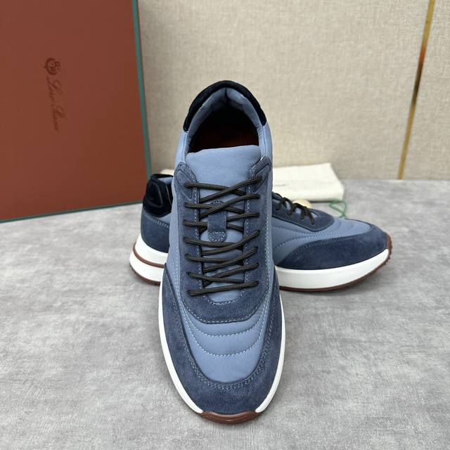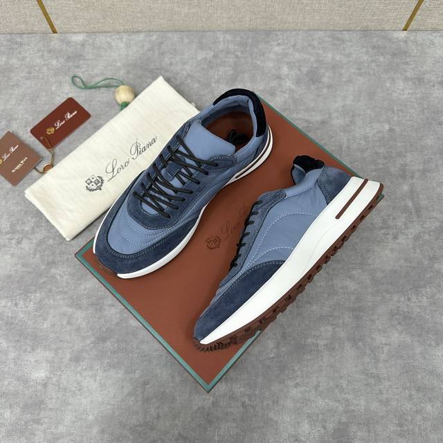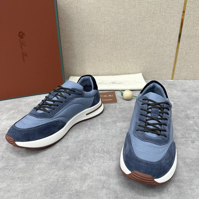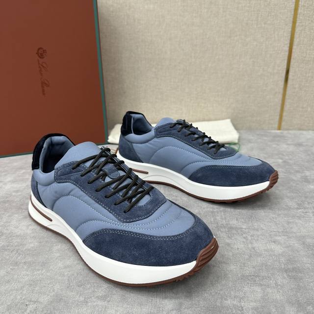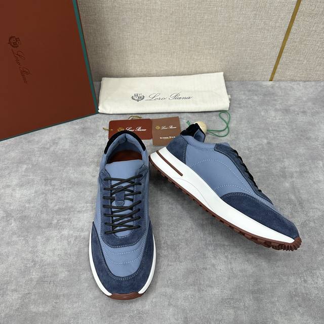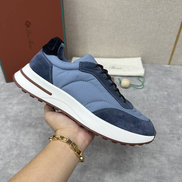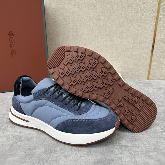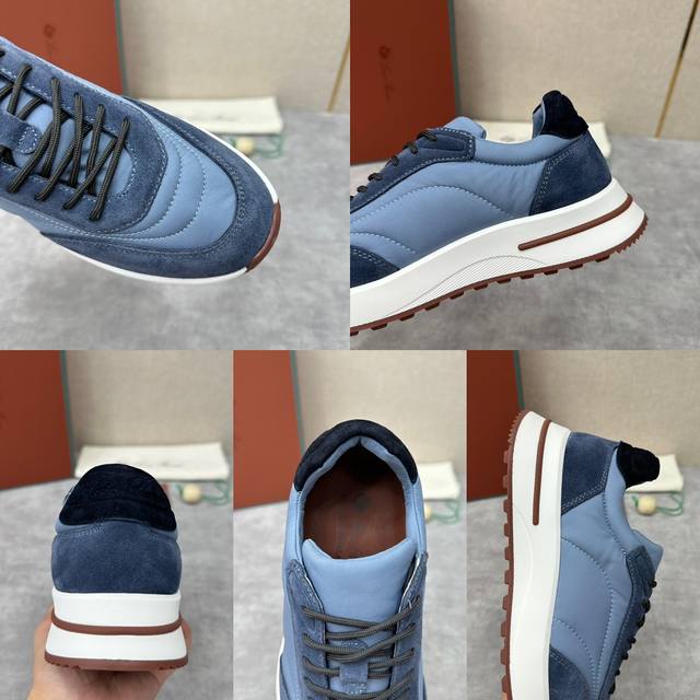 LP 家新品 Loro Pian* 诺悠*翩雅 Week End Walk 男士网面牛皮拼接休闲运动鞋 官方售价 RMB ,900 这款运动鞋采用经过 Storm System 防水防风处理的 Wind 微纤维材质制成。中部系带和绒面革细节的独特设计造型令其一领风骚。标志性缉面线与轻薄衬垫让穿着更加舒适贴合,轻盈的橡胶鞋底和防滑细节增强抓地力和稳定性,高功能设计细节提升了鞋子的运动风格。Kummel 色橡胶鞋外底采用轻盈的材料制成:这种构造可以确保行走中适当的重量分配,提高减震性和回弹力 鞋眼和鞋后上片点