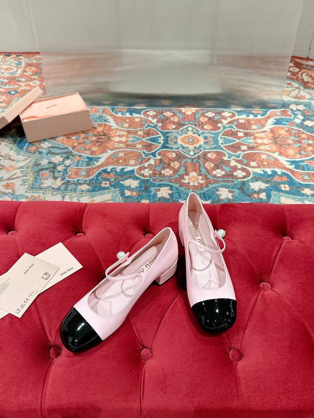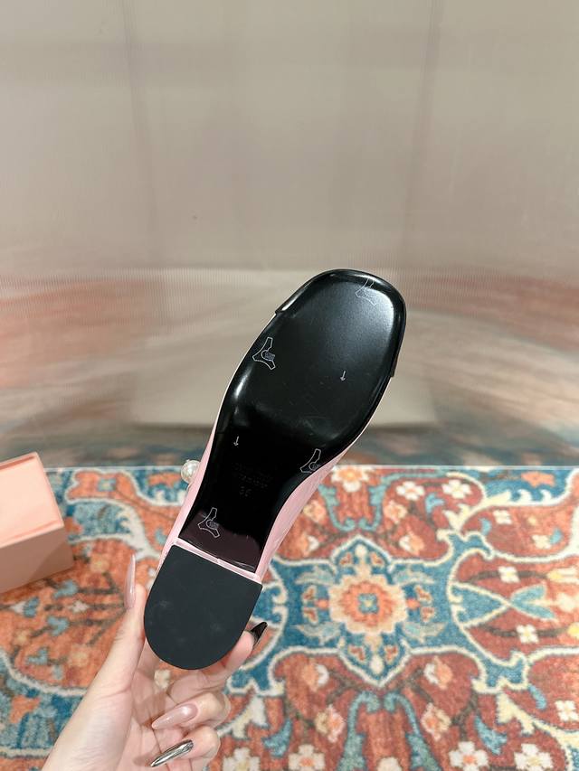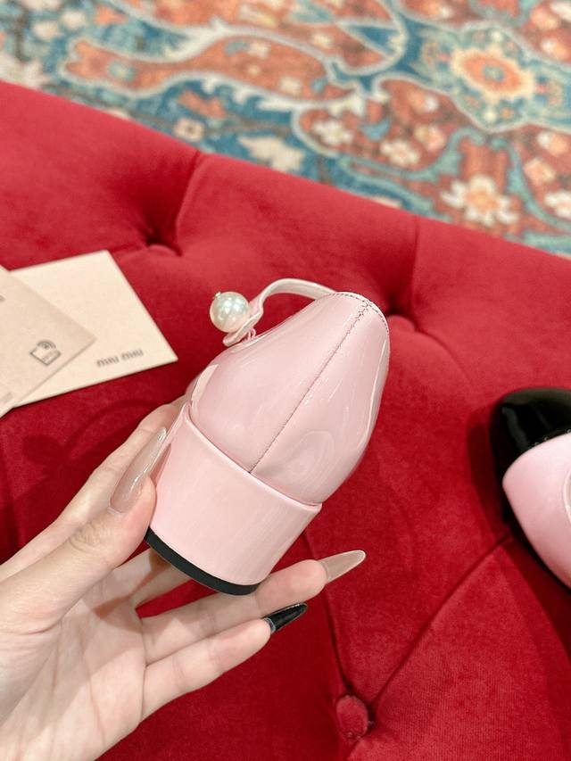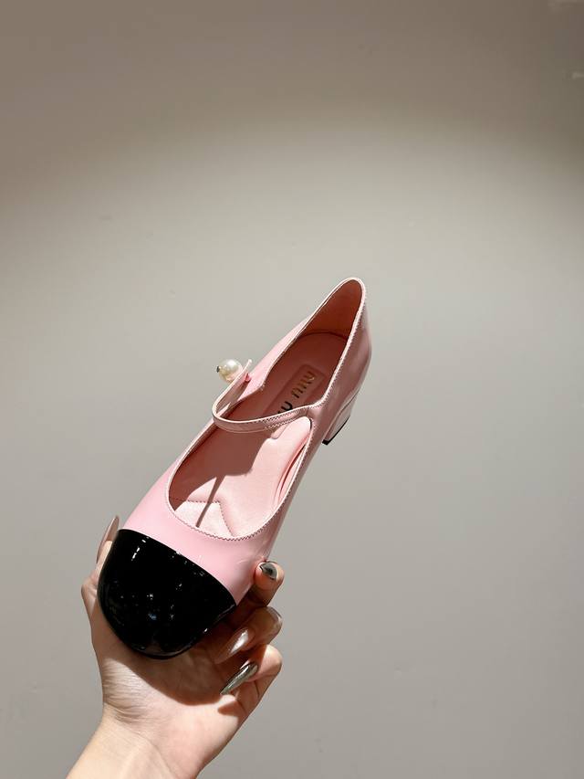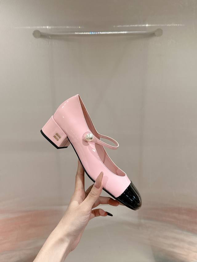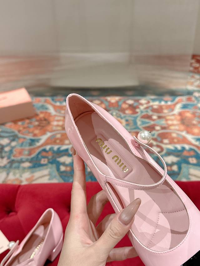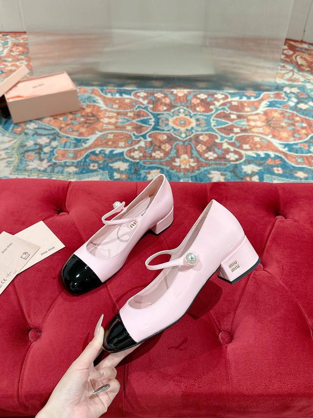 Miu Miu 缪缪 25 早春新品 专柜主打最新走秀款 珍珠扣复古玛丽珍粗跟单鞋