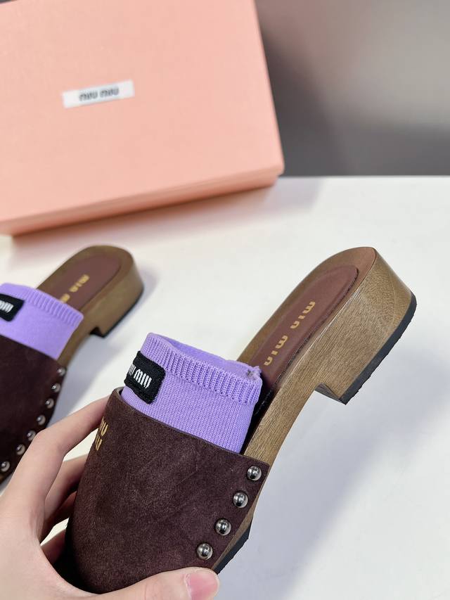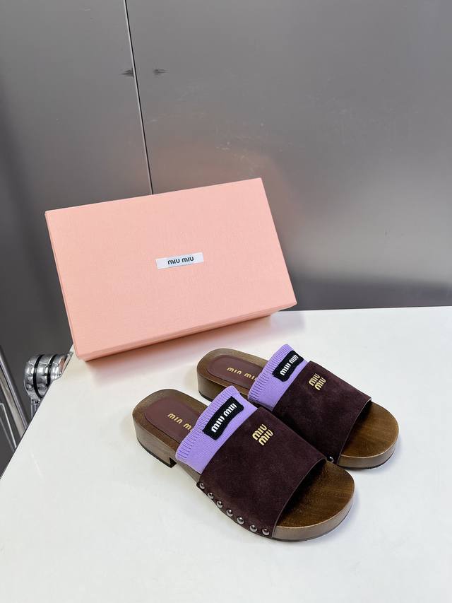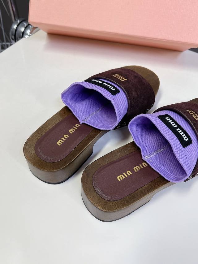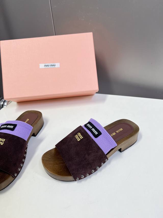 Miumiu缪缪春夏秀款拖鞋 25秀款出镜率最高单品 简约鞋面金色miumiu字母logo非常的醒目