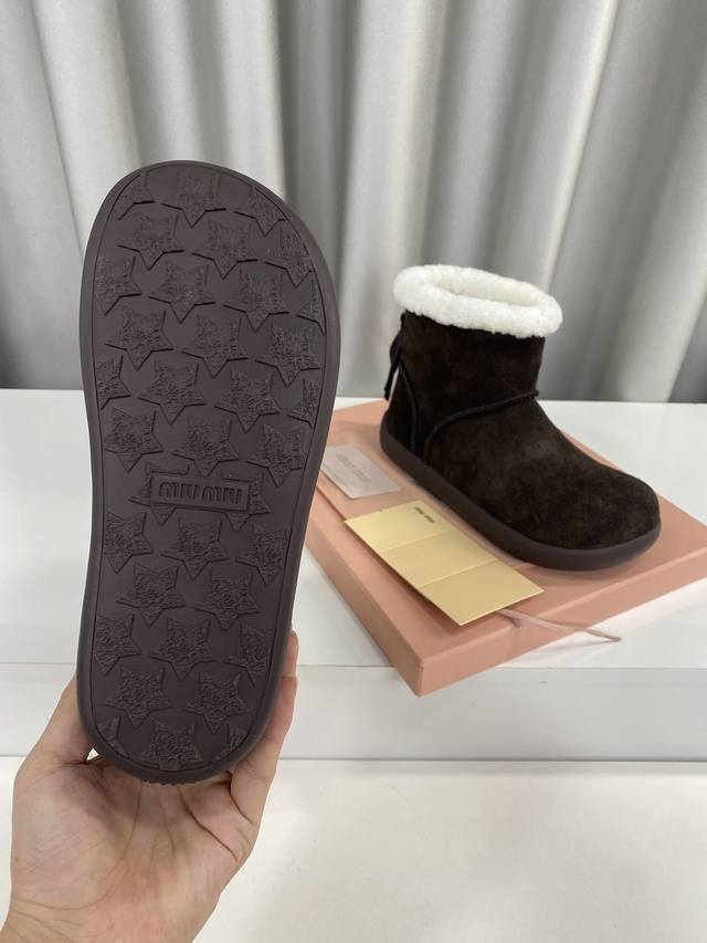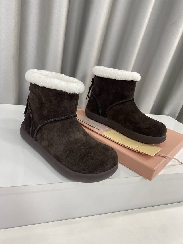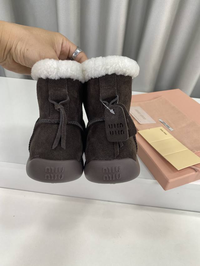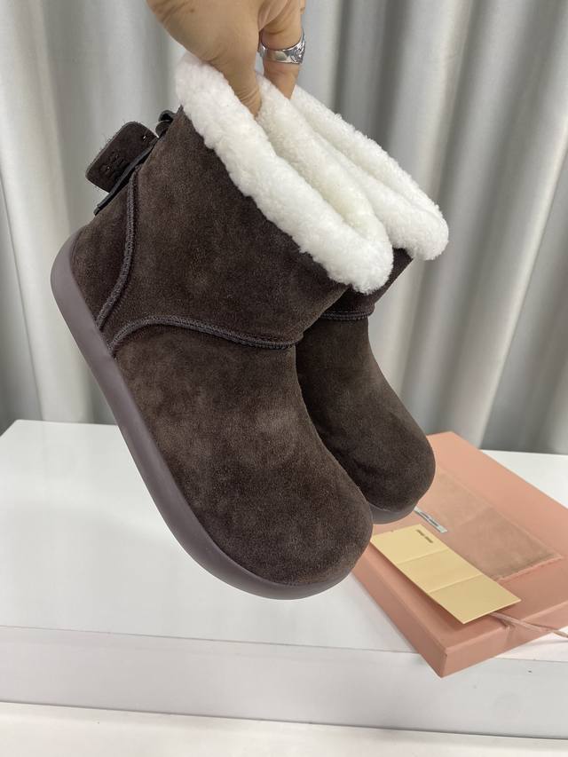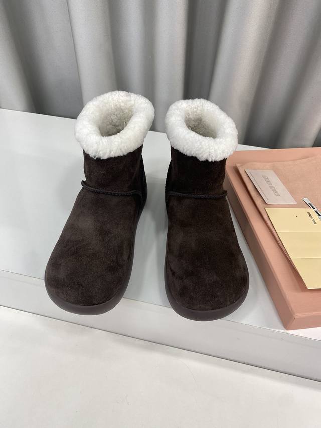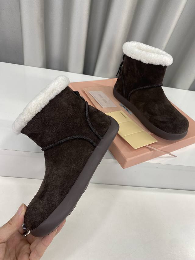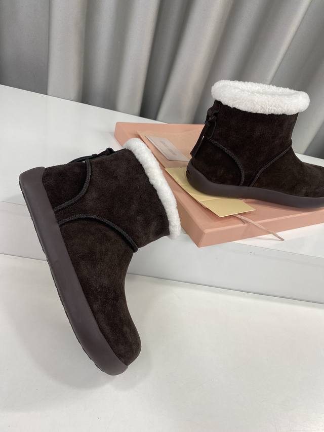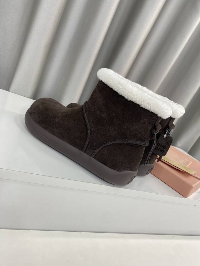 Miumiu 缪缪 24Ss 秋冬新款美拉德色大头羊毛短靴