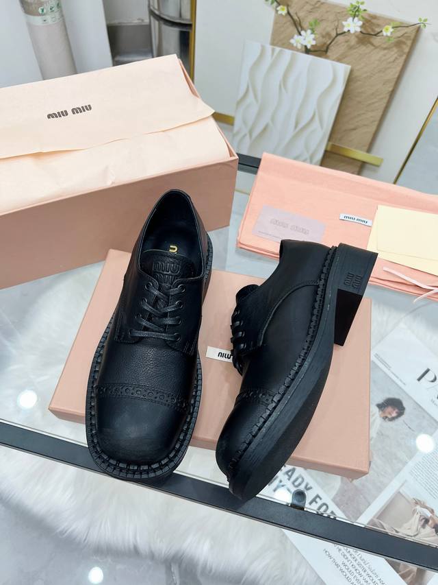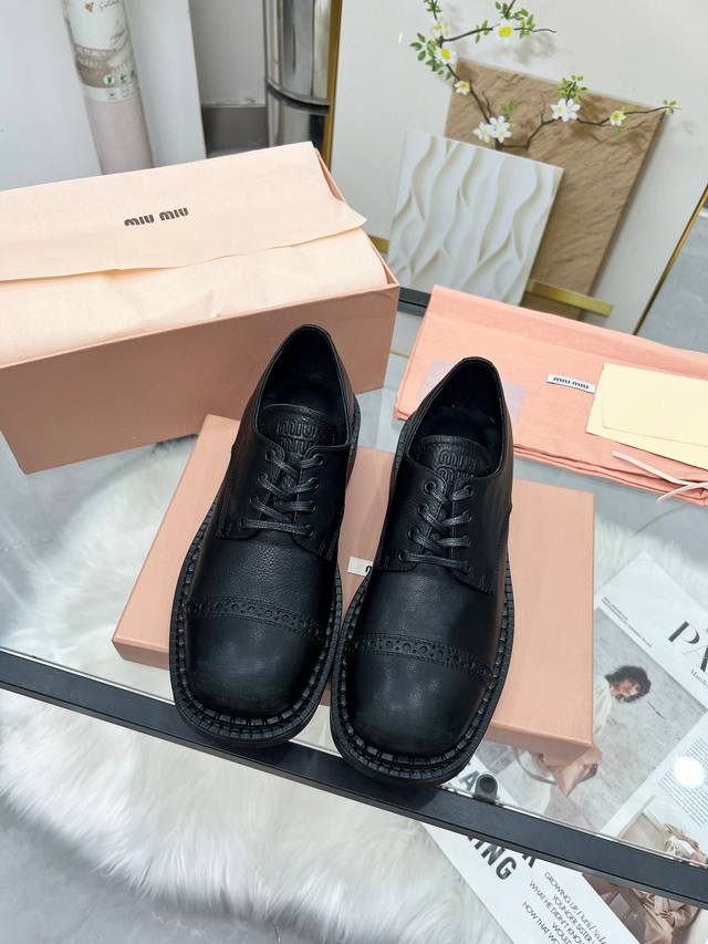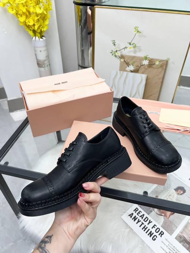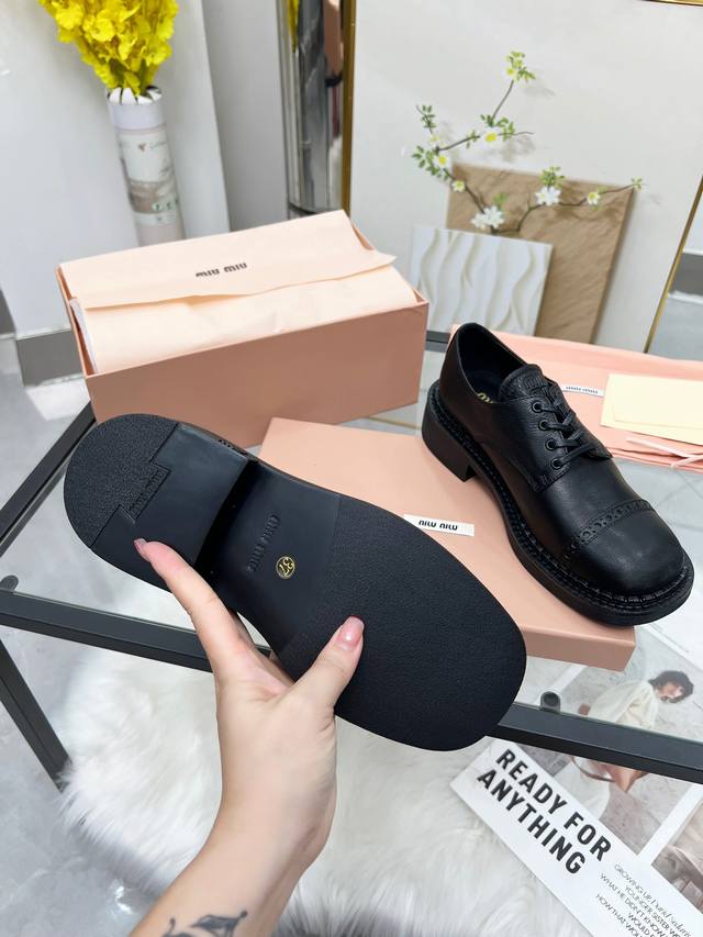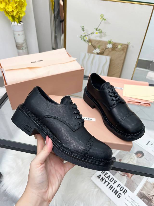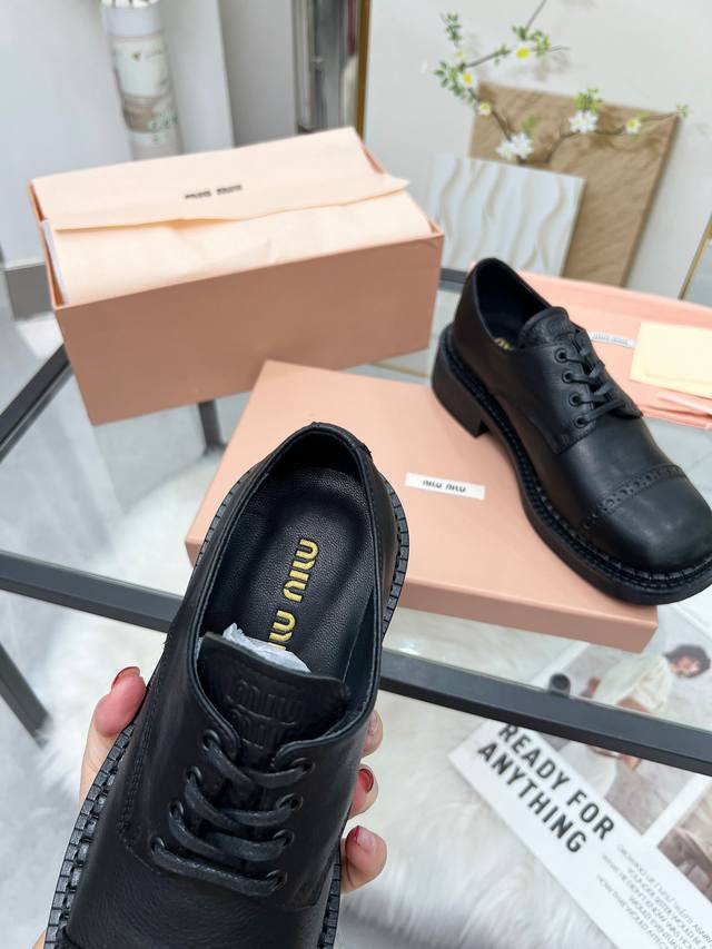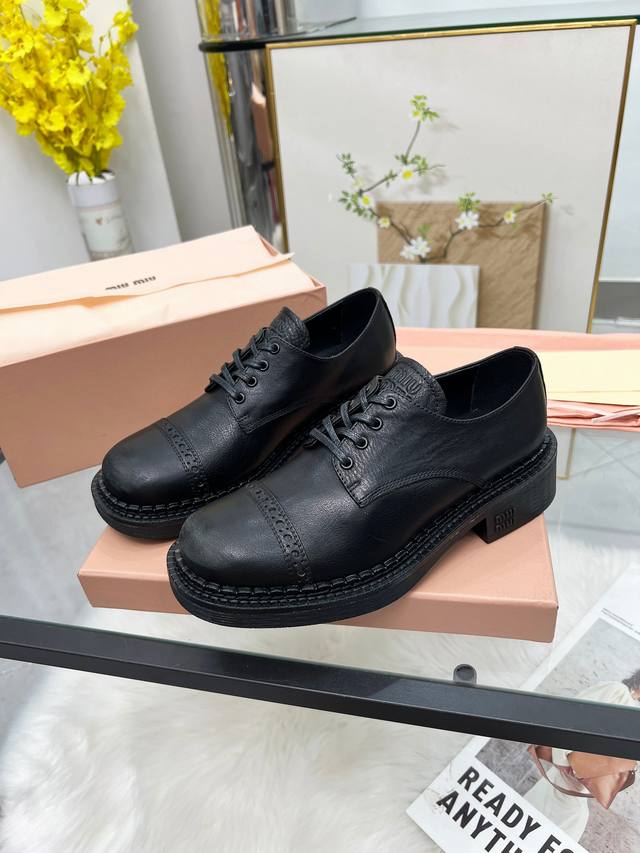 Miumiu25Ss缪缪走秀款 复古百搭休闲做旧乐福鞋压花乐福鞋 进口环保水洗牛皮 羊皮里 跟高3.5厘米 矮个子的福音哦 上班旅游两不误! 两色供应 35-41码