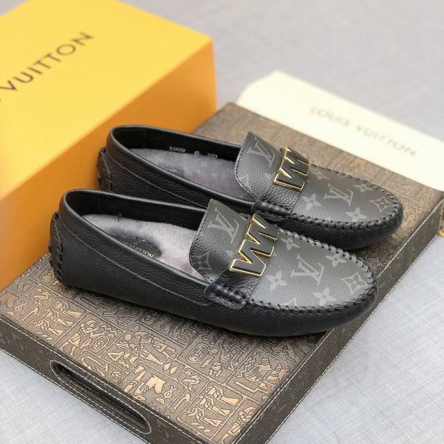 Ouis *Uitto * 秋冬款皮毛一体 男士豆豆鞋毛里加绒 高端品质 顶级版本 牛皮粒纹真羊毛内里。原版包装 。尺码 38-45。
