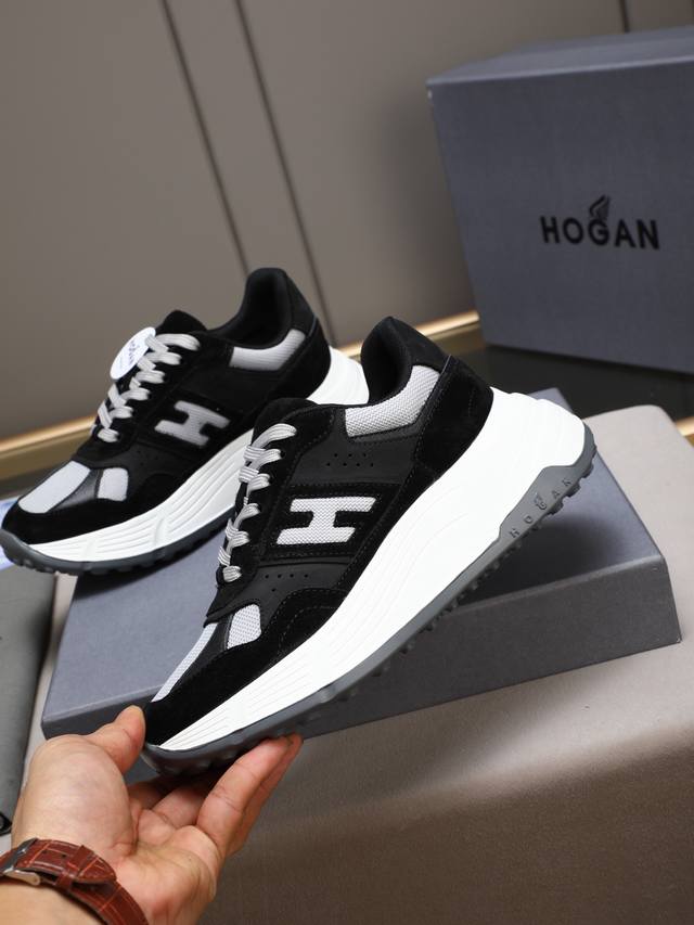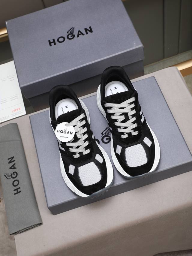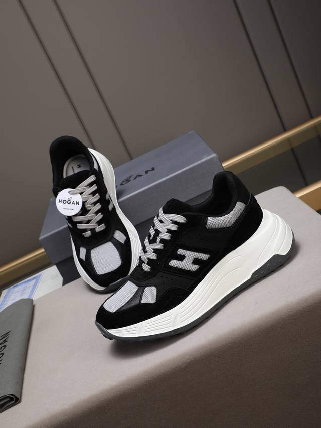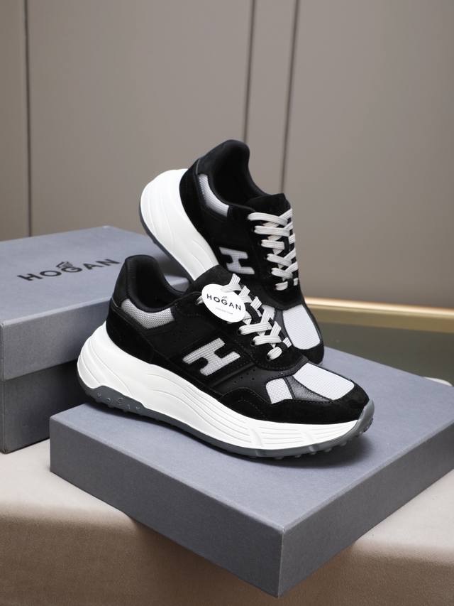 p Hogan 霍根 2025新款转图必爆 H-Stripes系列情侣款厚底老爹鞋飞艇鞋休闲运动鞋。