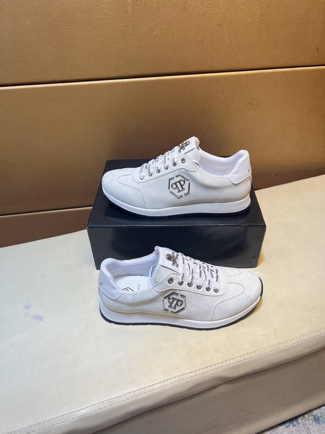 p pp 菲利普 原单品质.~ 独特现代风运动鞋。休闲鞋潮男必备款 意大利进口原版品牌,进口原版皮,羊里 拒绝脱色磨脚 鞋底:原厂特供原版底,法国懒人风格设计 贴脚 在贴原单品质 超舒服原版底 。就好像实物拍摄实物更赞 ,高品质板鞋,人 男鞋码数:38-44