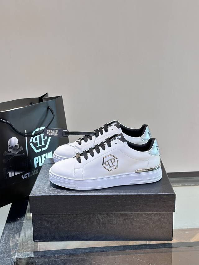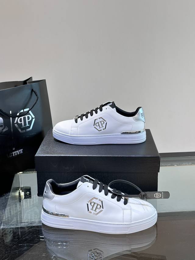 / Philipp Plein低帮系带运动鞋,这款运动鞋采用进口牛皮材质精工制作而成。经典时尚百搭,非常好穿的一款,运动休闲都可以,上脚舒爽透气,侧面饰金属字母lo