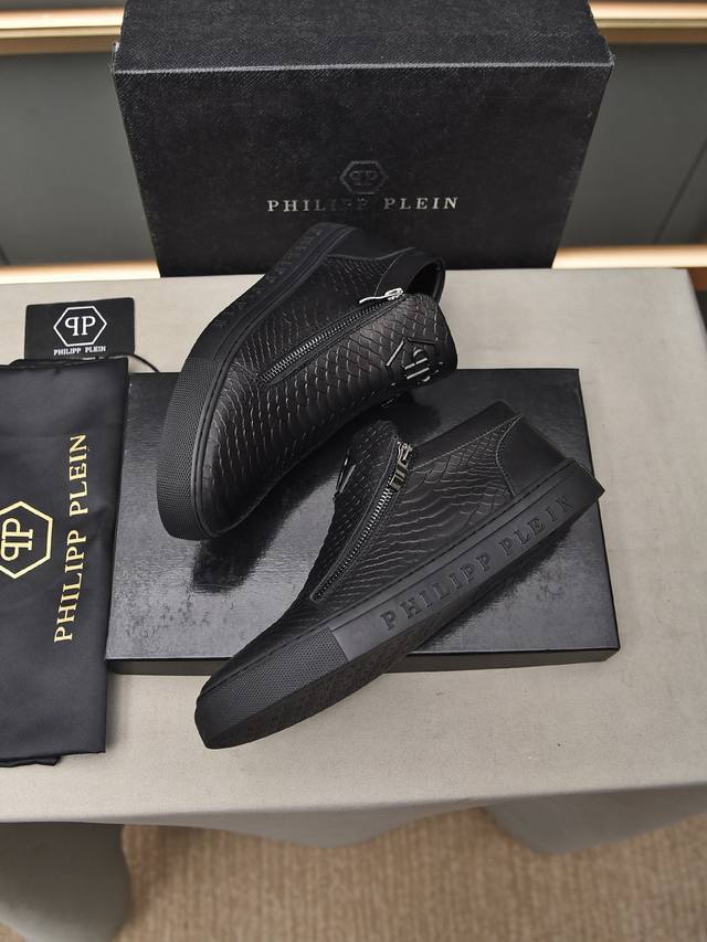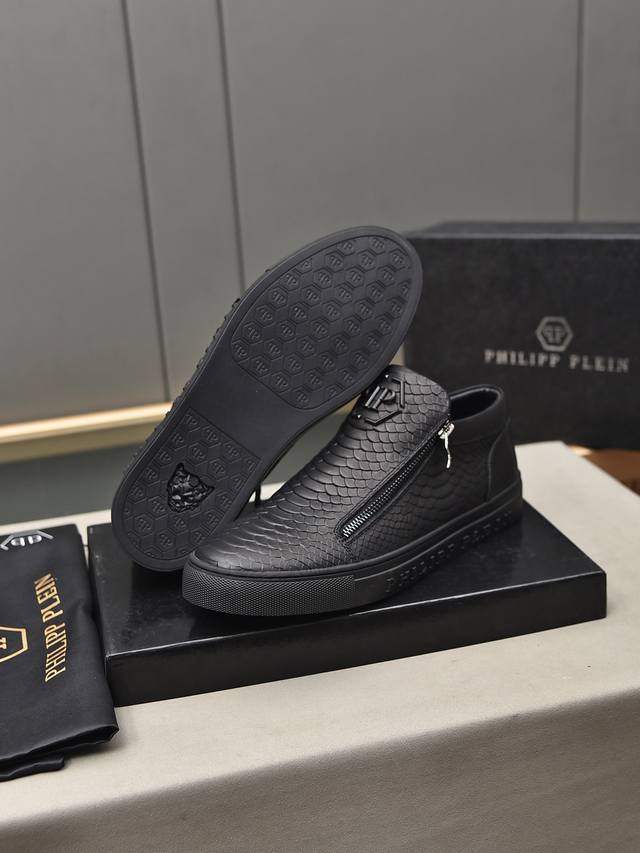 PHILIPP PLEIN 原单版本 菲利普 普莱茵:男士最新专柜同步发售,意大利进口*小牛皮 透气皮里,鞋身品牌金属饰扣装饰; 做工考究!鞋底:原厂特供原版底