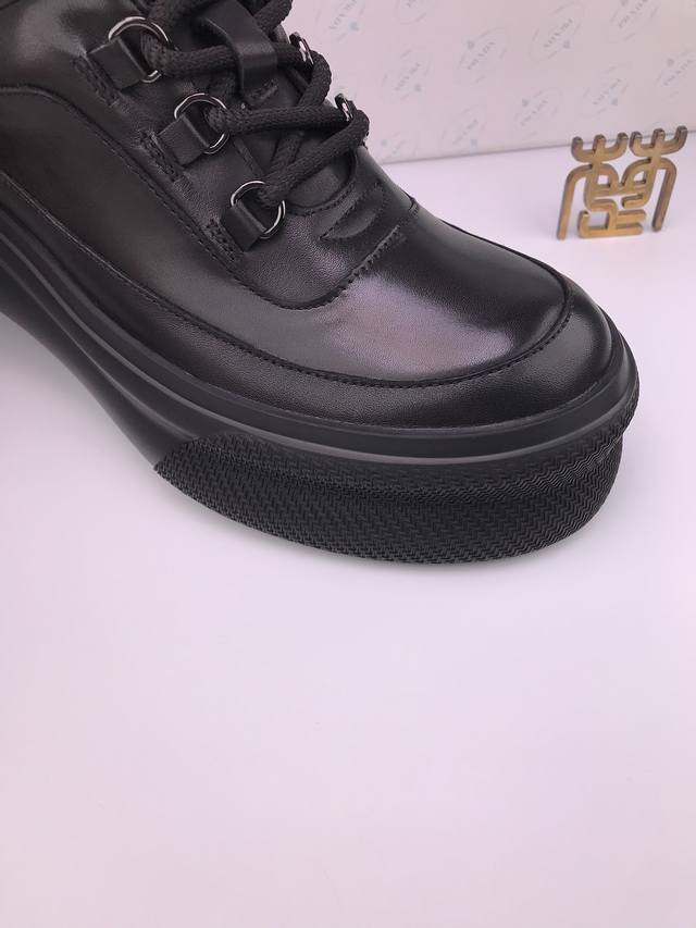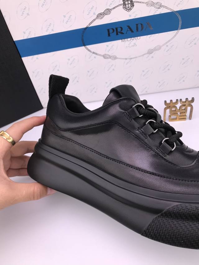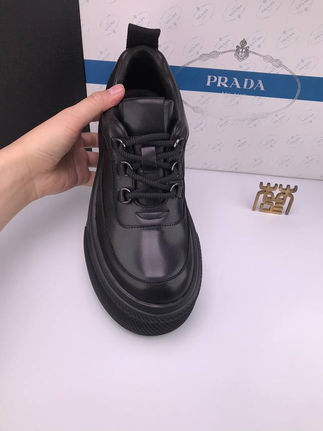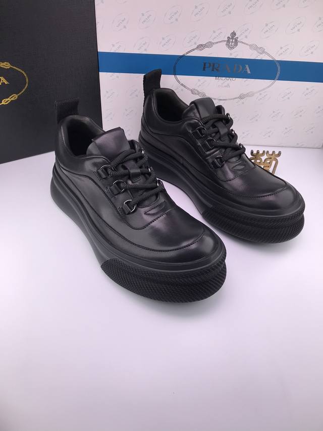 PRAD* 小牛皮 超轻翘头厚底 休闲鞋 小牛皮 皮质柔软 纹理清晰 细腻 色泽均匀 质感强 高档亮泽 全包牛皮内里 高品质EVA底 加厚超轻 脚感好 穿着舒适 真材实料 品质三包 38-44码