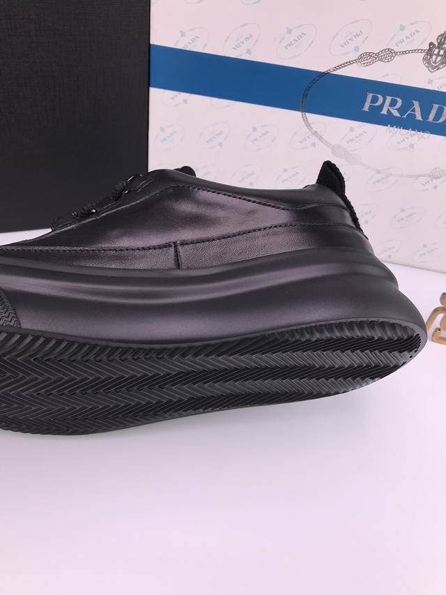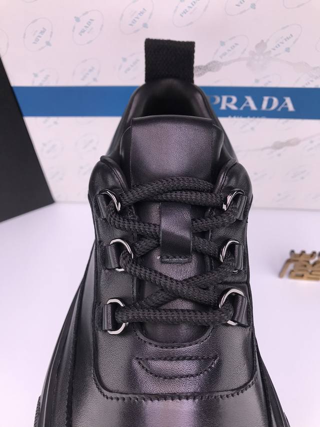 PRAD* 小牛皮 超轻翘头厚底 休闲鞋 小牛皮 皮质柔软 纹理清晰 细腻 色泽均匀 质感强 高档亮泽 全包牛皮内里 高品质EVA底 加厚超轻 脚感好 穿着舒适