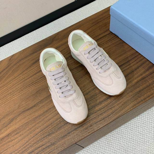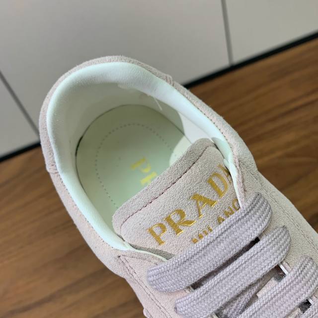 prad* 情侣款休闲运动鞋。上脚非常舒适。鞋面牛皮、羊京。羊皮内里,牛皮垫脚。定制橡胶大底。