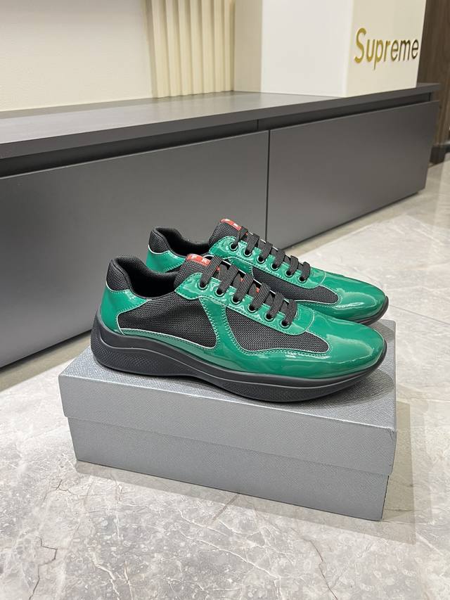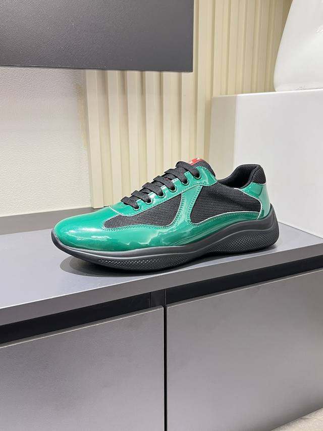 prad* 情侣款新款休闲运动鞋,高端品质 Tw定制双层透气网布拼接头层牛皮材质, 鞋垫是小牛皮 冲孔设计 透气舒适 原厂真空pu吸塑大底 轻质柔软 脚感超级好