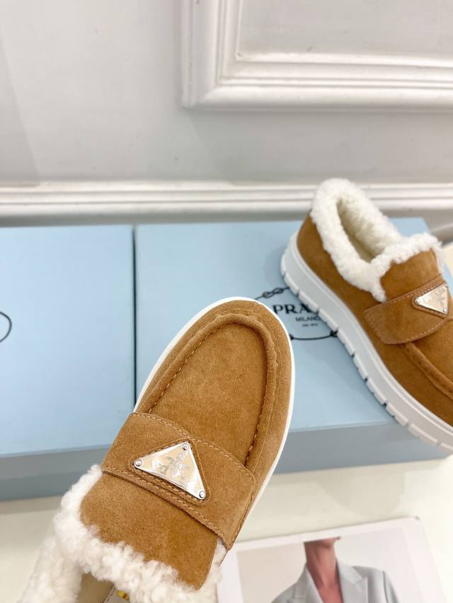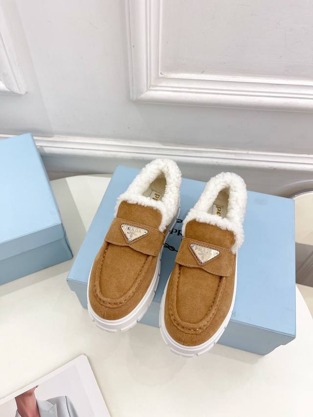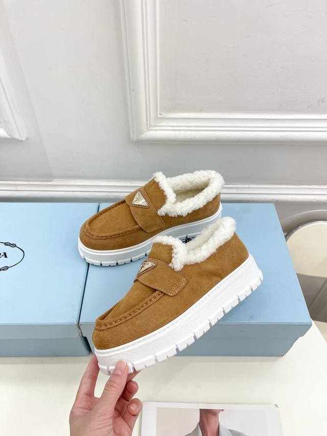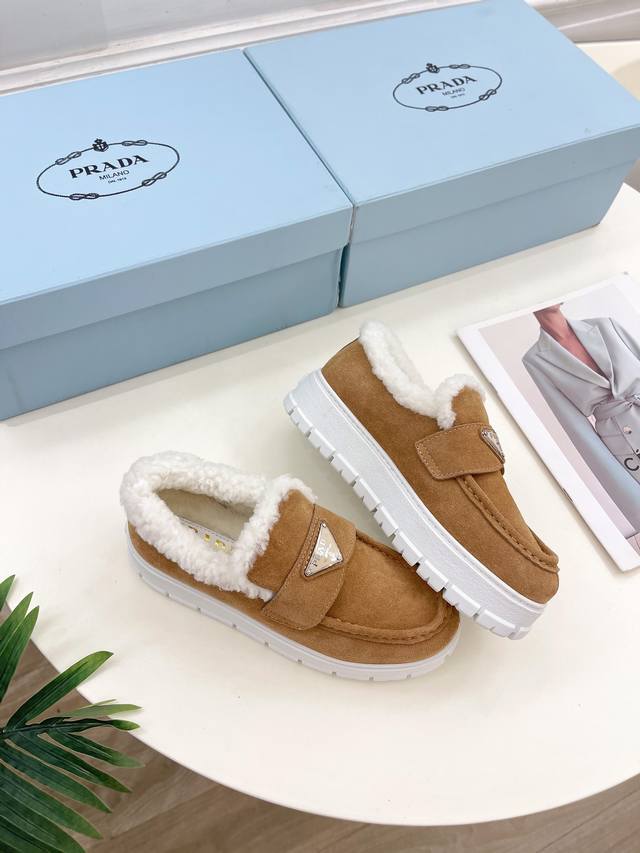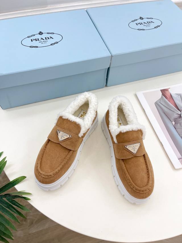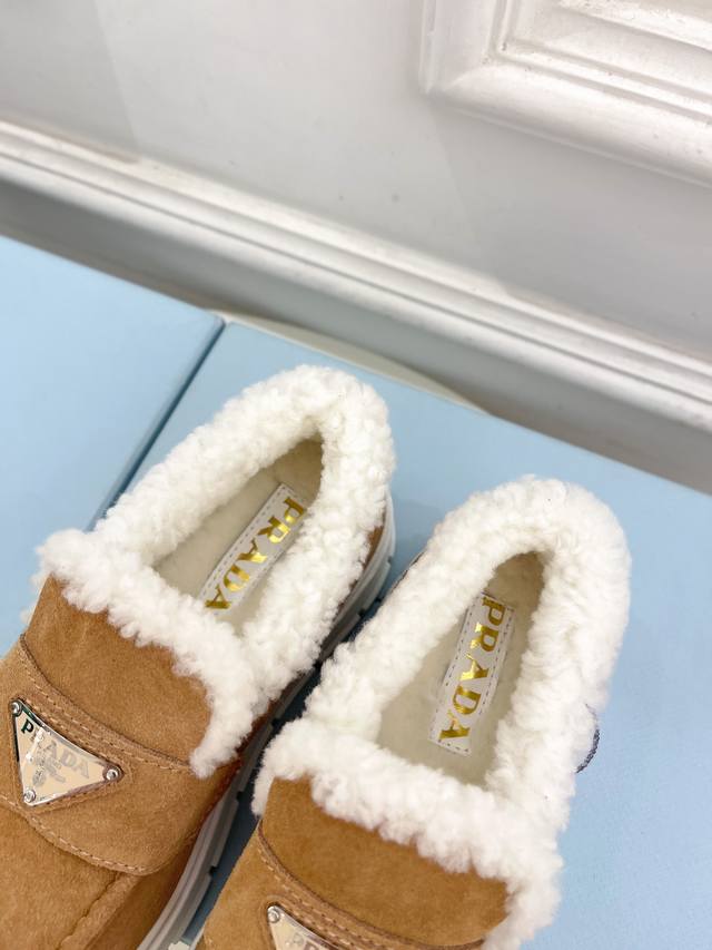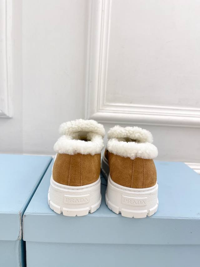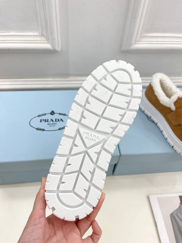 PRADA早春T台走秀网红同款" 1鞋面:釆用进口头层牛京 2内里:进口羊羔毛内里 3大底:原版开模大底搭配 4原羊毛垫脚, 码数35-41码: