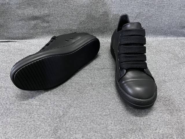 rick Owens主线 经典低帮黑色粗鞋带牛皮面料,火爆上市原版奶香底tpu材质,正确版本 女码36-40 男码39-46