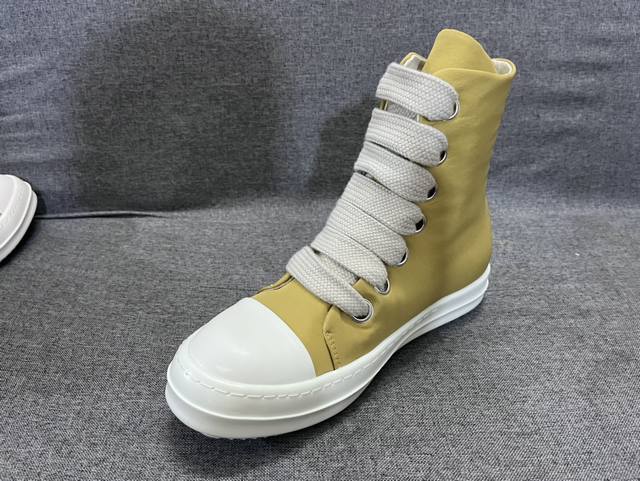 rick Owens副线drkshdw高帮布面粗鞋带铆钉独家款火爆上市原版奶香底tpu材质,斜纹帆布面料,正确版本 男码39-46 女码35-40