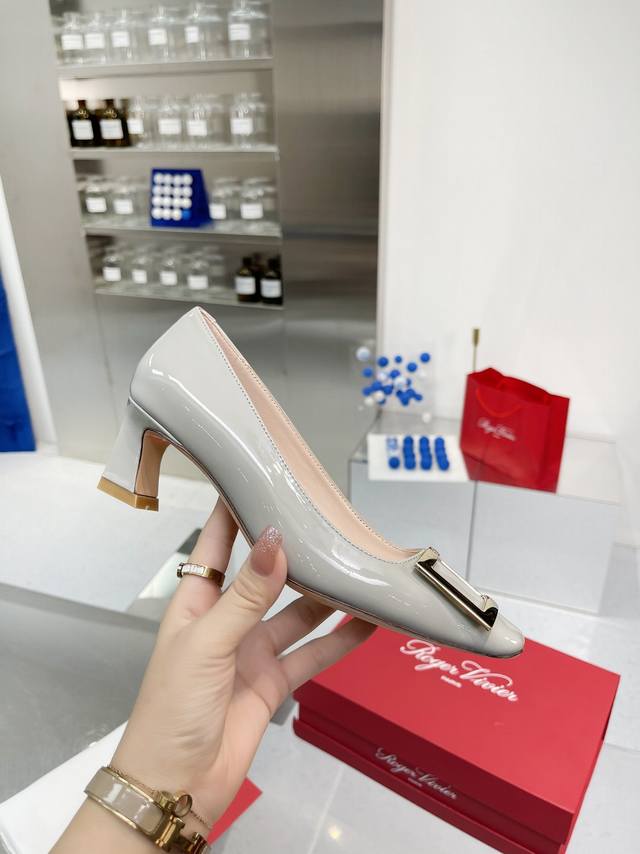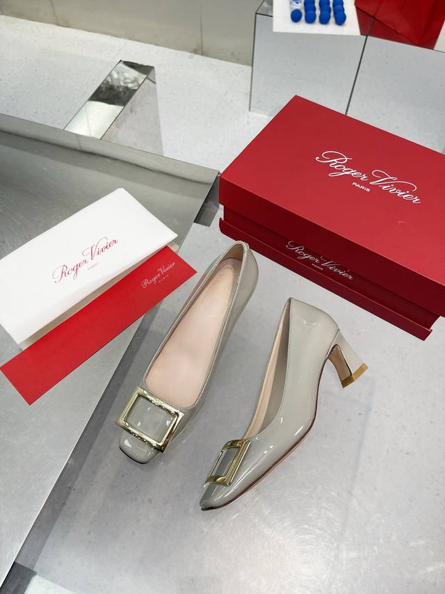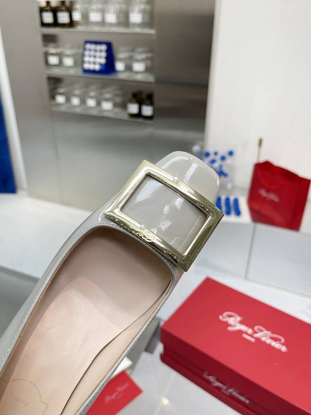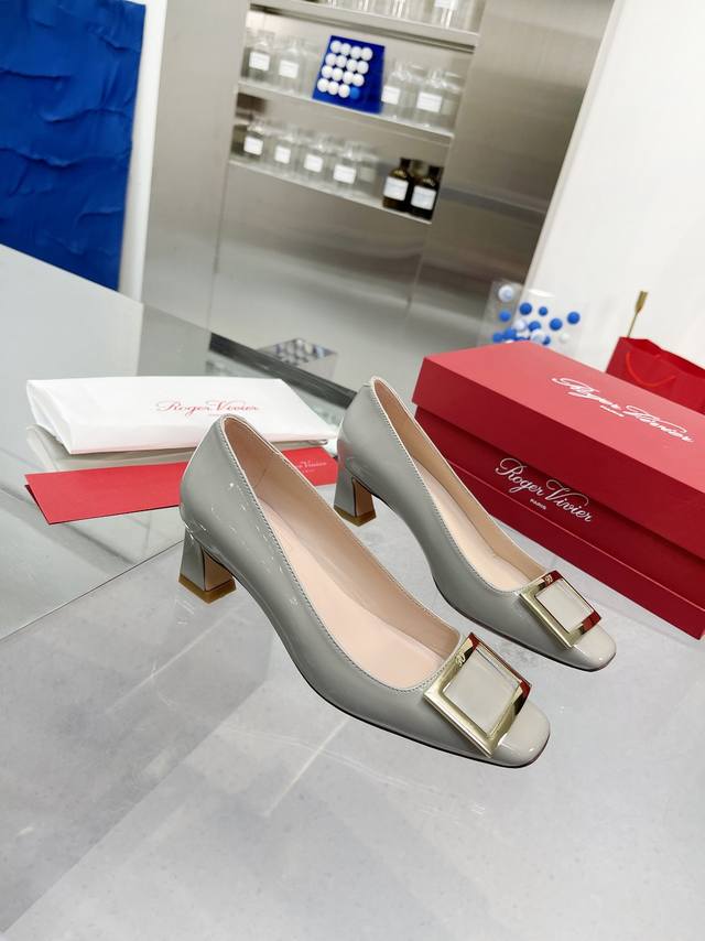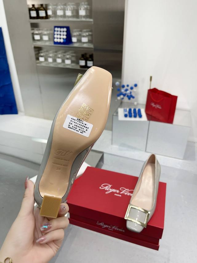 RogerVivie R V女鞋鞋Trompett粗跟方扣女鞋. 本款单鞋百搭舒适.搭配金属方扣. 经典而不失创新. 倾斜的鞋跟为Trmpette增添无穷魅力. 面料进口软牛柒皮. 内垫脚一致羊皮内. 跟高5cm. 码数35-40 34.40 订做. 出厂
