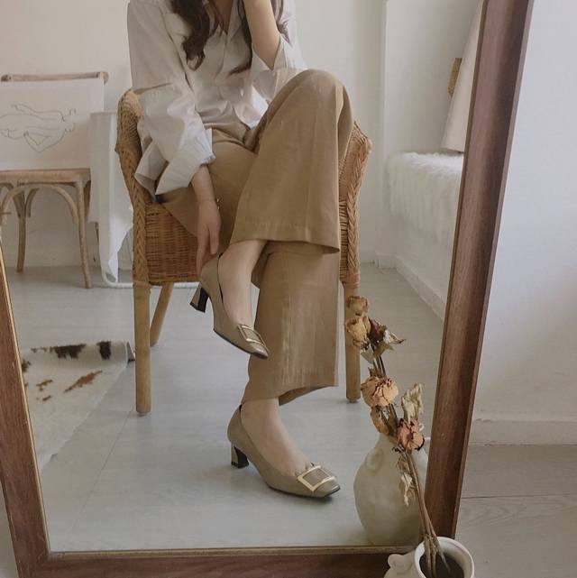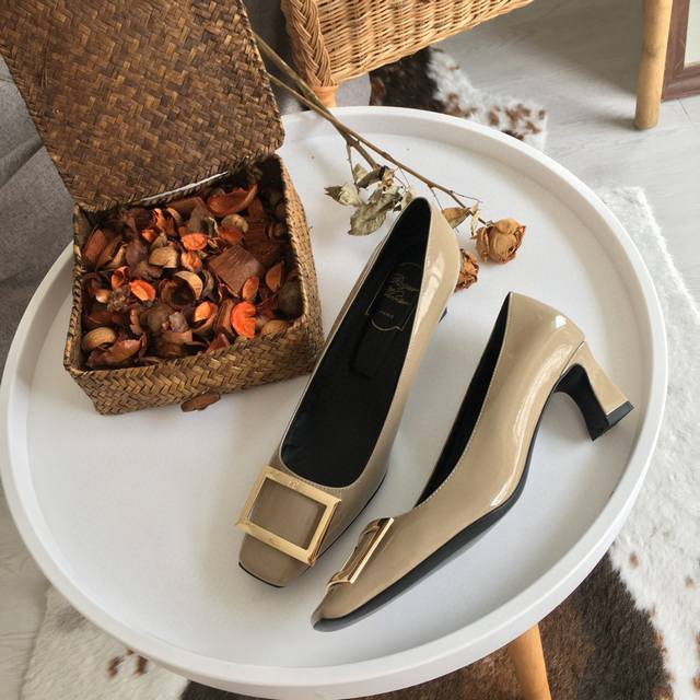 RogerVivie R V女鞋鞋Trompett粗跟方扣女鞋. 本款单鞋百搭舒适.搭配金属方扣. 经典而不失创新. 倾斜的鞋跟为Trmpette增添无穷魅力. 面料进口软牛柒皮. 内垫脚一致羊皮内. 跟高5cm. 码数35-40 34.40 订做. 出厂