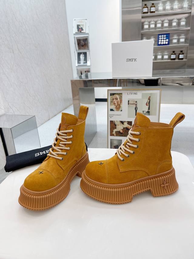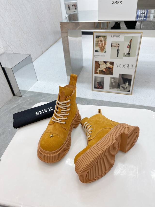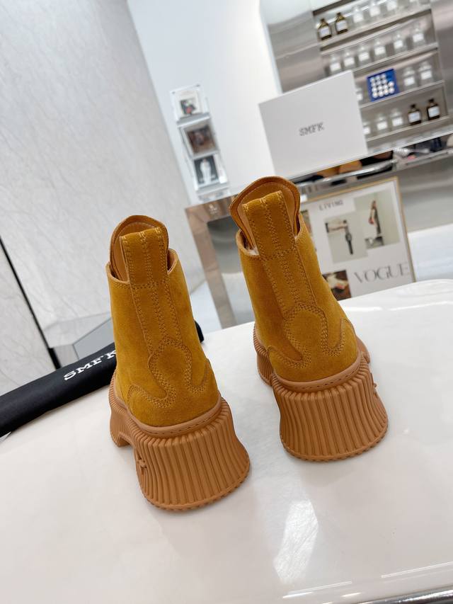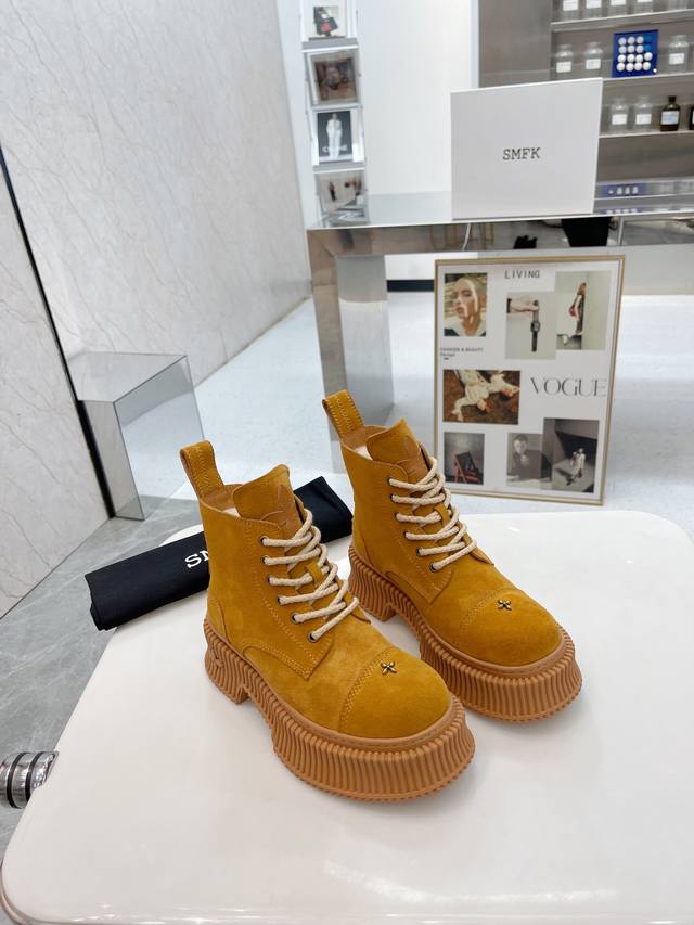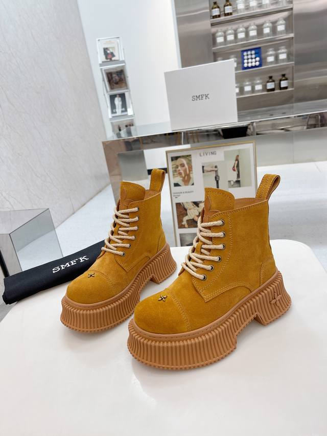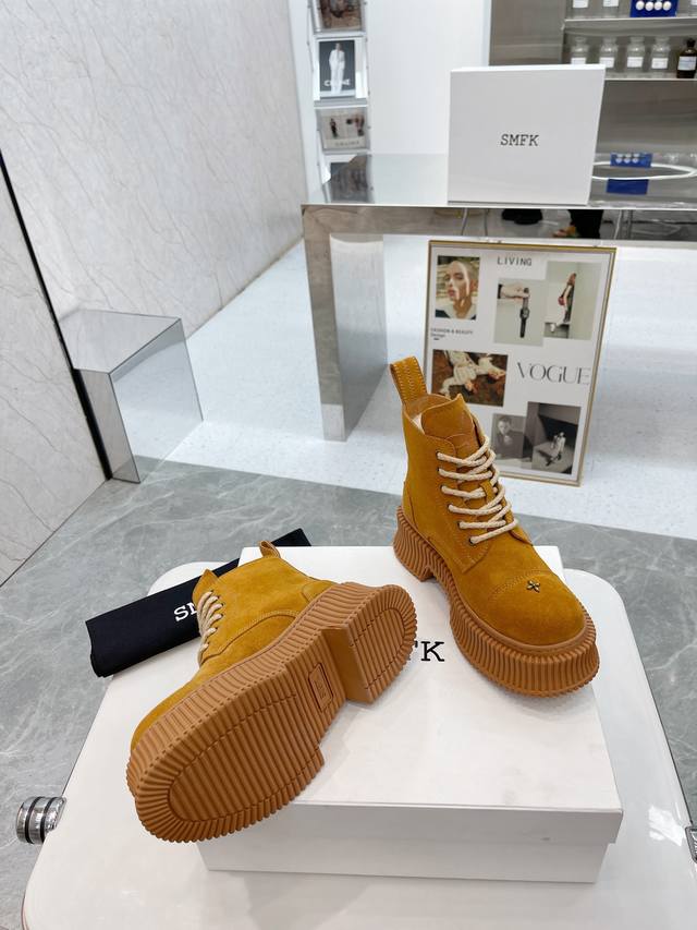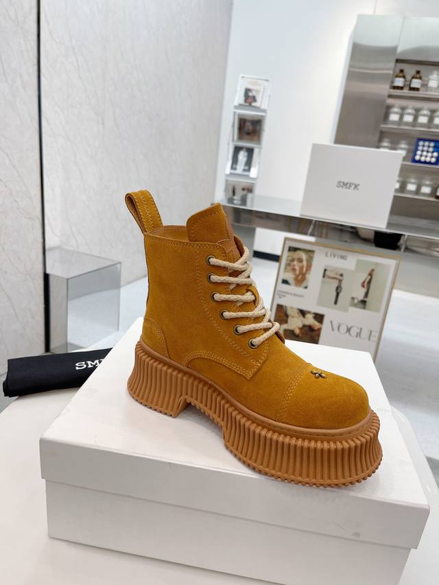 SMFK毛靴最新火爆沙漠废土羊毛马丁靴 买手店一鞋难求 超多明星网红种草 吴宣仪同款大黄靴主打的就是“泰裤辣”, 鞋面采用进口牛反绒, 内里进口澳洲羊毛上脚非常