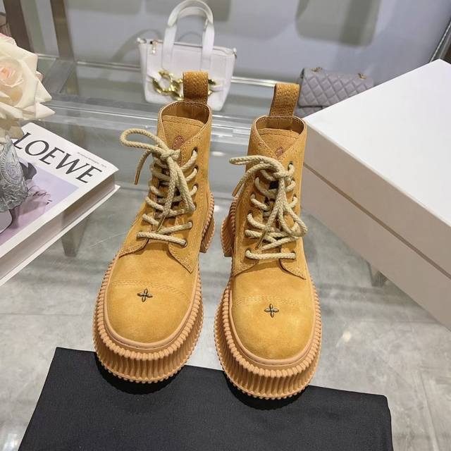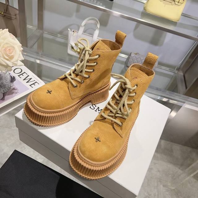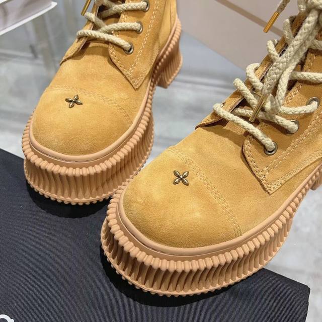 Smfk 新款网红明星吴宣仪同款马丁靴,4寸短靴废土风沙漠厚底大黄靴,橡胶底暗藏内增高5Cm,跟跟6Cm,面料:A级高丝光牛反绒 内里垫脚羊皮,尺码34-40
