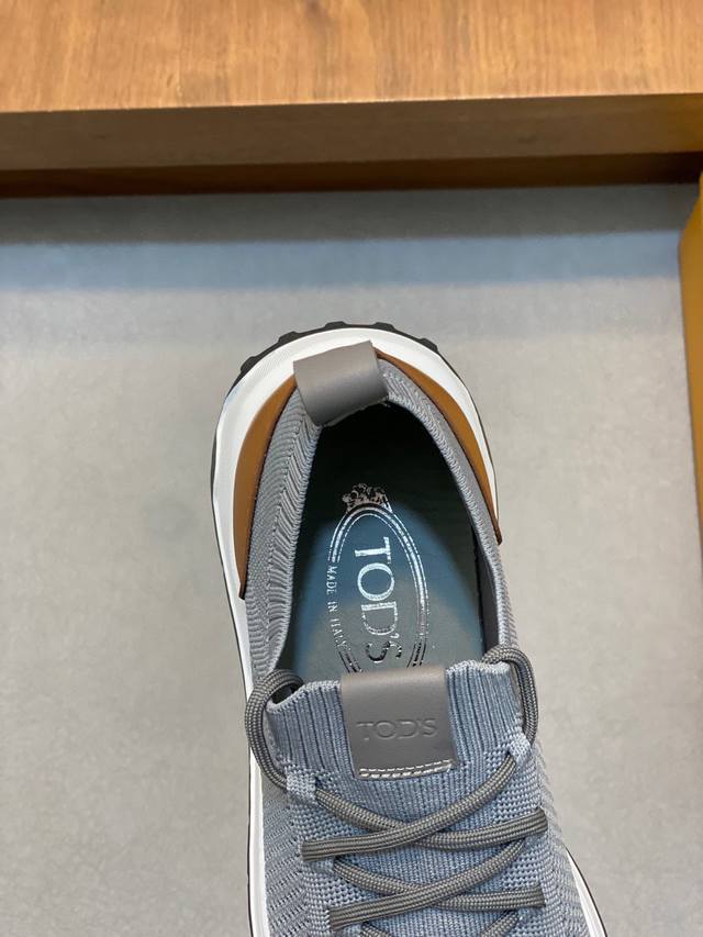 本款tod’S 运动鞋以新颖设计吸引眼球,橡胶豆豆尽显品牌传统元素 绒面皮革拼光滑皮革制成,拼缝织物,触感柔软,侧边饰以tod‘S 标识