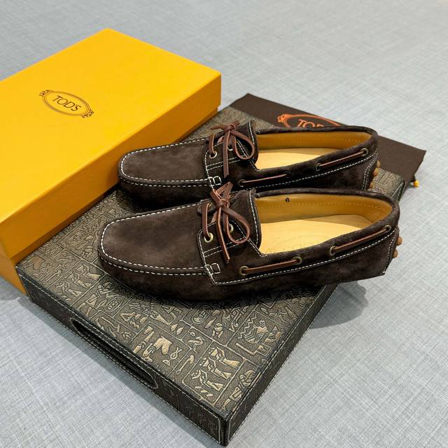 tods 实价 男士豆豆鞋 专柜同步新款 高端品质 磨砂牛皮杏色牛里.原版包装。咖啡色,尺码38-45。