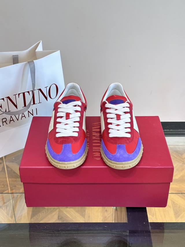 VALENTIN* 华伦天*情侣款休闲板鞋,时尚百搭单品,小牛皮重工打造 橡胶鞋底装饰 VLogo Signature 和铆钉细节 头层牛皮内里,上脚舒适有型 时尚感十足!原盒包装,多色可选!