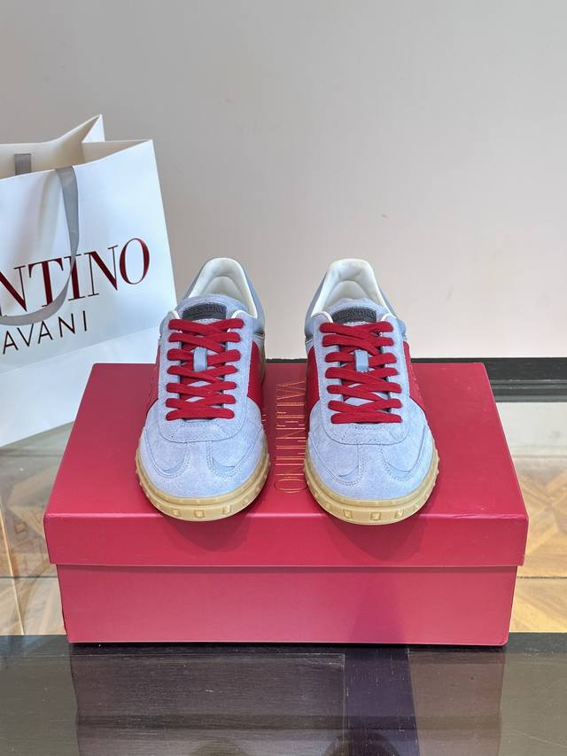 / VALENTIN* 华伦天*情侣款休闲板鞋,时尚百搭单品,小牛皮重工打造 橡胶鞋底装饰 VLogo Signature 和铆钉细节 头层牛皮内里,上脚舒适有型