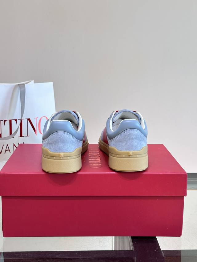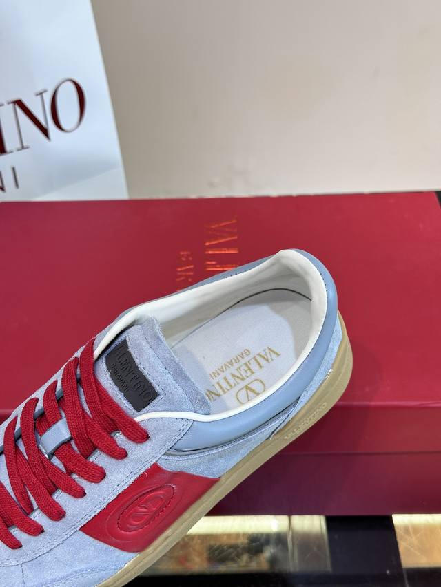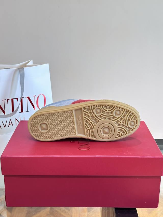 VALENTIN* 华伦天*情侣款休闲板鞋,时尚百搭单品,小牛皮重工打造 橡胶鞋底装饰 VLogo Signature 和铆钉细节 头层牛皮内里,上脚舒适有型