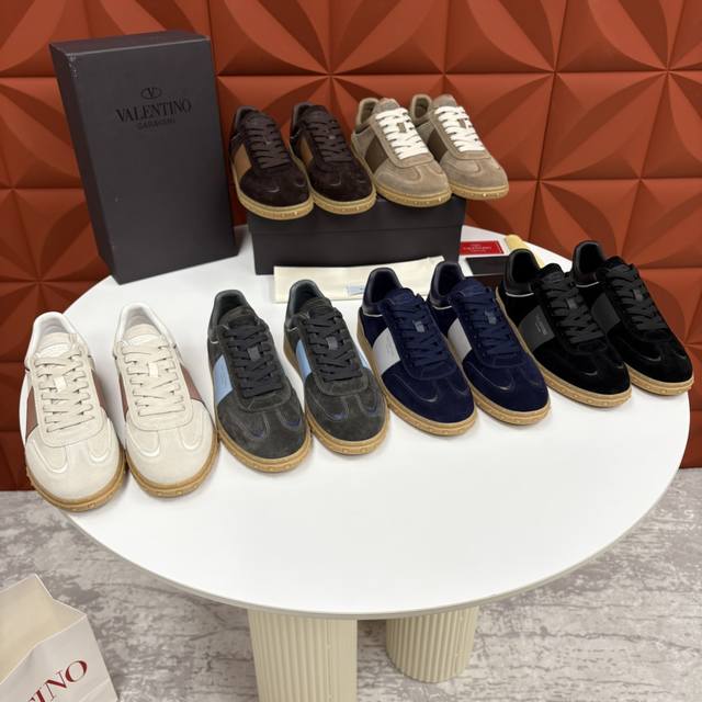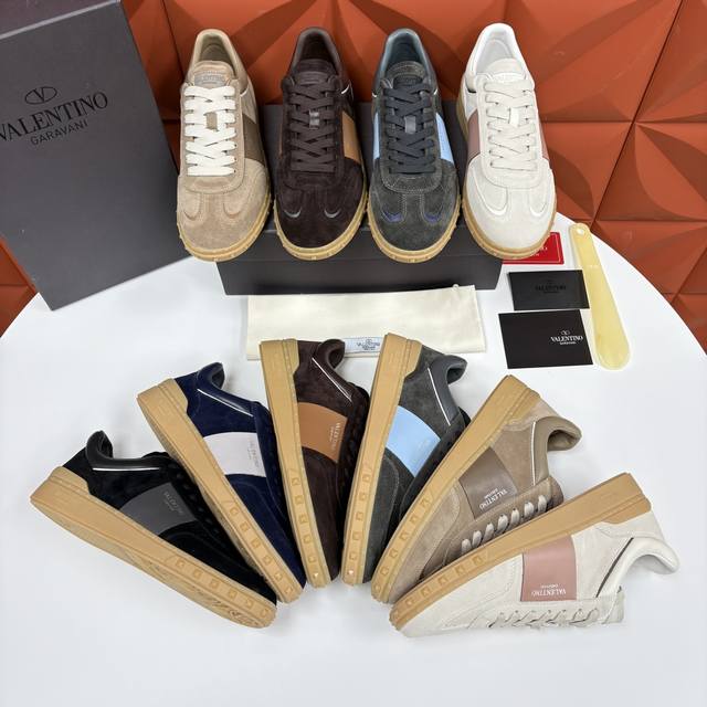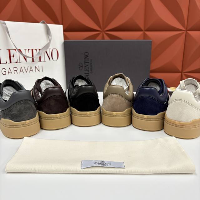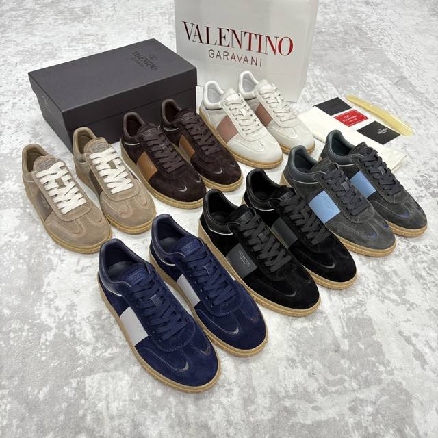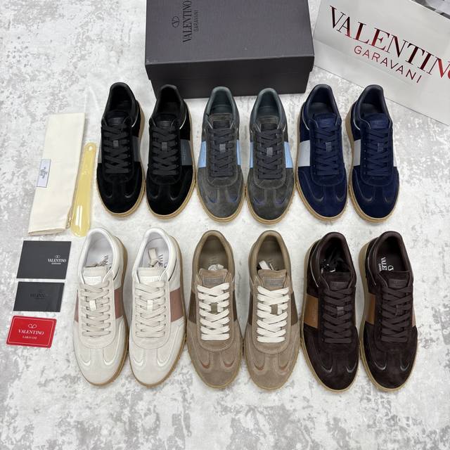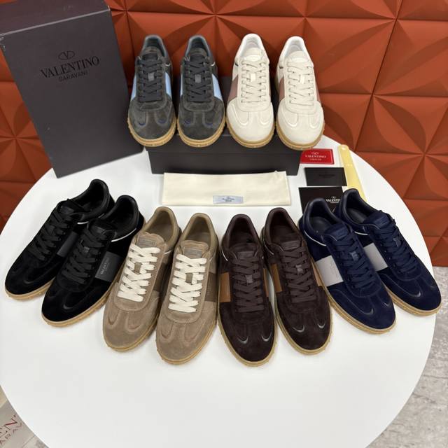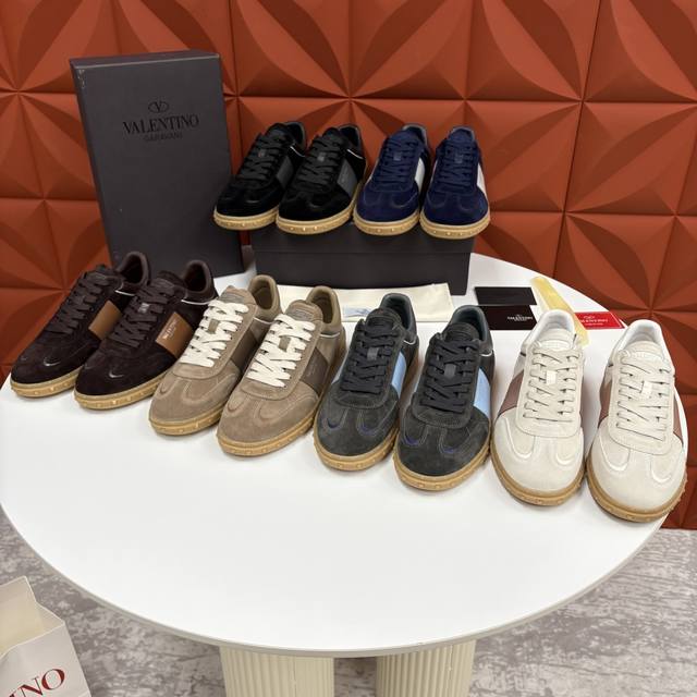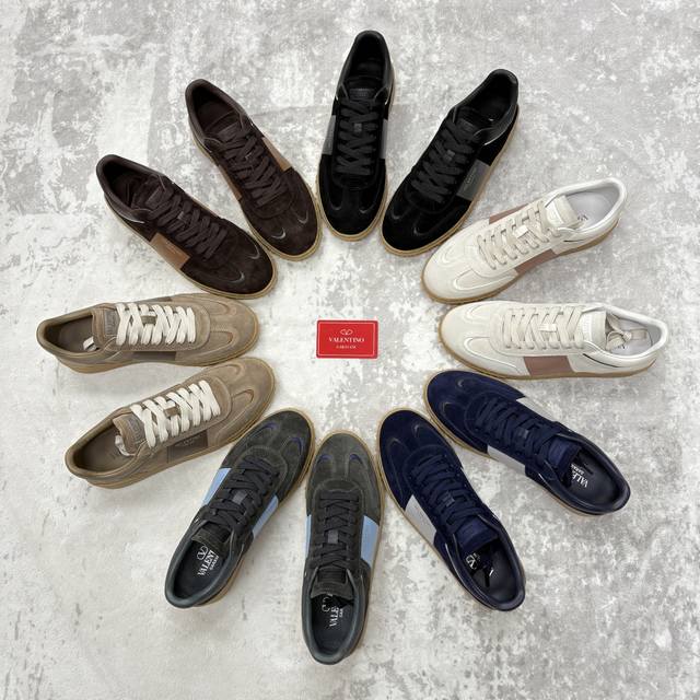 vt新品 Valentin* Garavan* 华伦~ 低帮运动鞋板鞋系列 鞋面采用高品质的绒面革和皮革材质,绒面革质地柔软细腻,触感舒适,内里黑色小牛皮打造 鞋舌处饰以 Logo 徽标加持 双侧牛皮撞色贴片 同时为鞋子带来了独特的质感和复古韵味;色块拼接,打破了深色的沉闷,使鞋子更具层次感和视觉冲击力。这组运动鞋在设计上独具匠心,延续了Valentin* 一贯的优雅风格,同时又注入了现代运动时尚的元素。经典的低帮款式,线条流畅自然,贴合脚部曲线,展现出简洁大方的美感。鞋身采用拼接设计,不同材质和色彩的搭