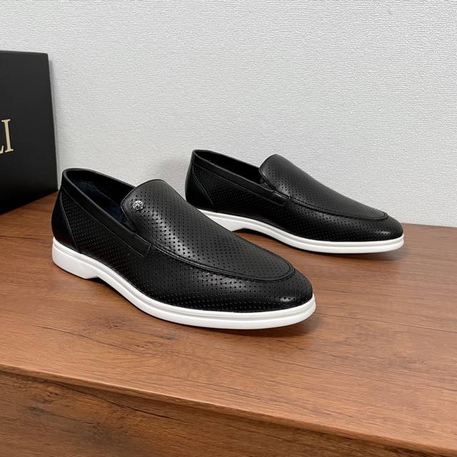 Zilli 男士新款皮革冲孔乐福鞋