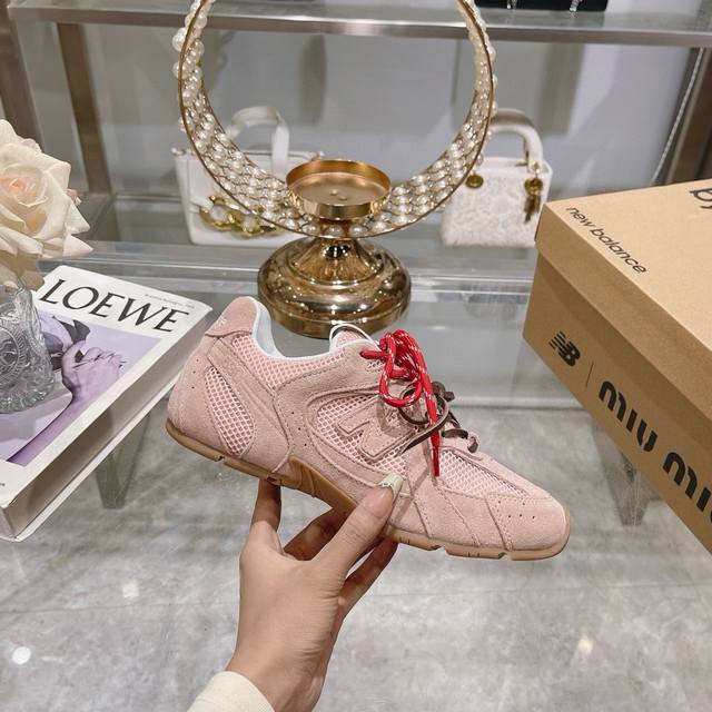 原版开发,Miu Miux从new Balance 经典 Nb530运动鞋中汲取灵感,推出了自己的迭代版本530Sl 该运动鞋采用解构和轻盈的设计,带点彷旧的反毛皮覆着new Balance 530的轮廓,刻意磨损、不均匀的皮革色调,让波鞋多了不同的个性 这款联名鞋款配有双鞋带设计,营造出随性系起的感觉,为整体感又多了几分boyish以及率性感:原版定制进口头层反毛皮原版进口牛皮里原版开模防滑tpu材质