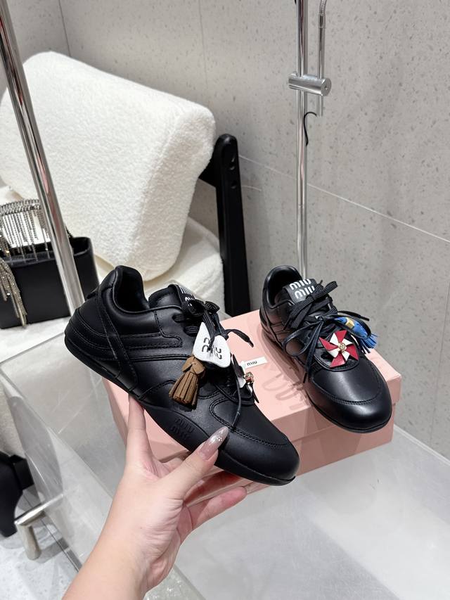 Miu Miu 的续作!经典的老爹鞋款式 New Balance 530 作为主角,Miumiu一改530熟悉的白波鞋配色,以深褐色、灰色,带点仿1旧的布料包覆着 New Balance 530 的轮廓,刻意磨损、不均勻的皮革色调,让波鞋多了不同的个性!