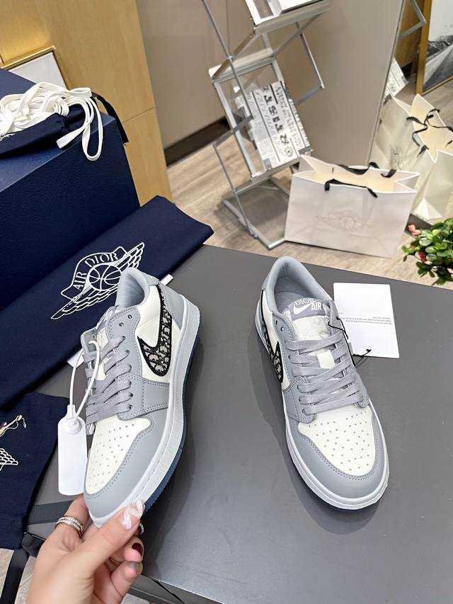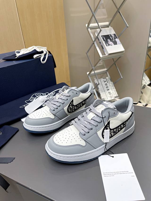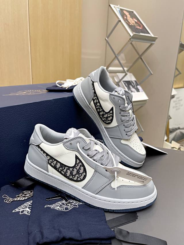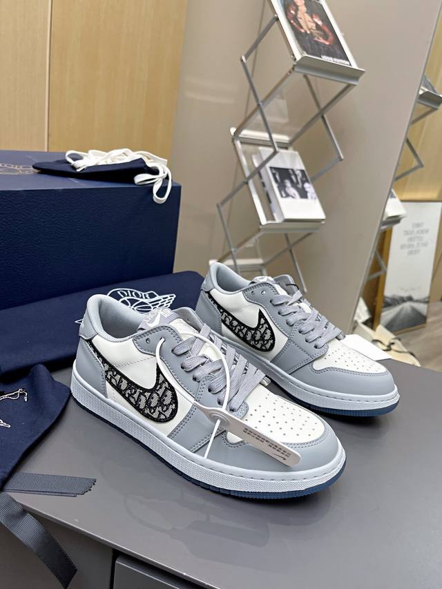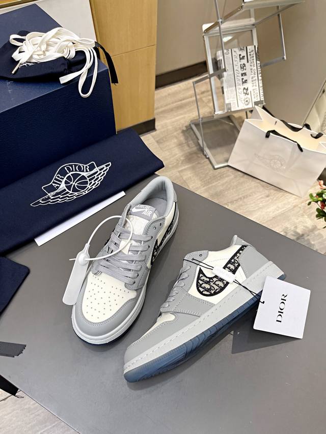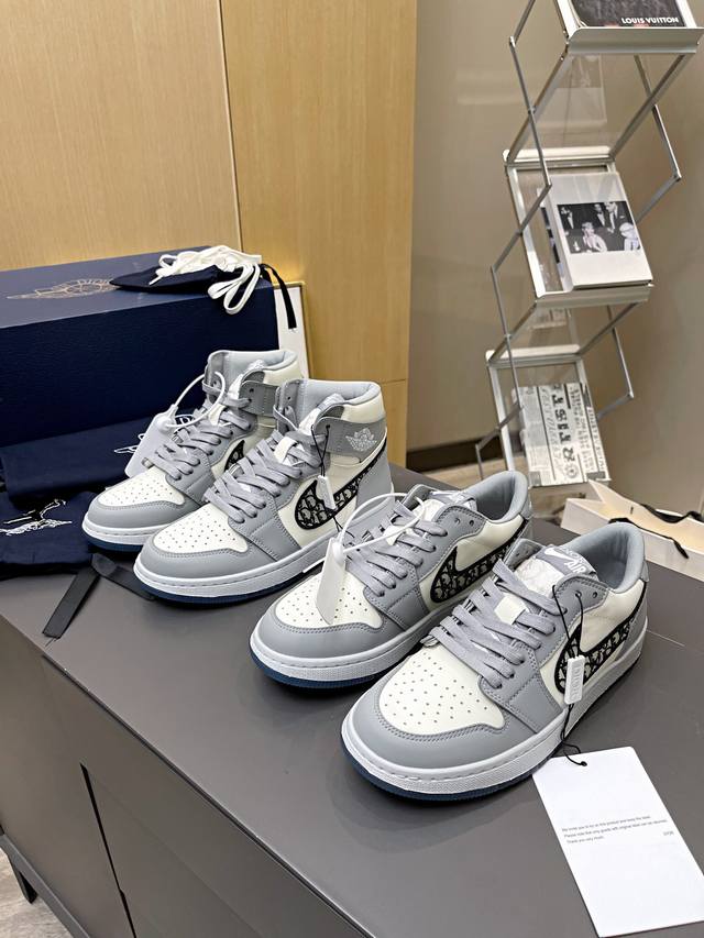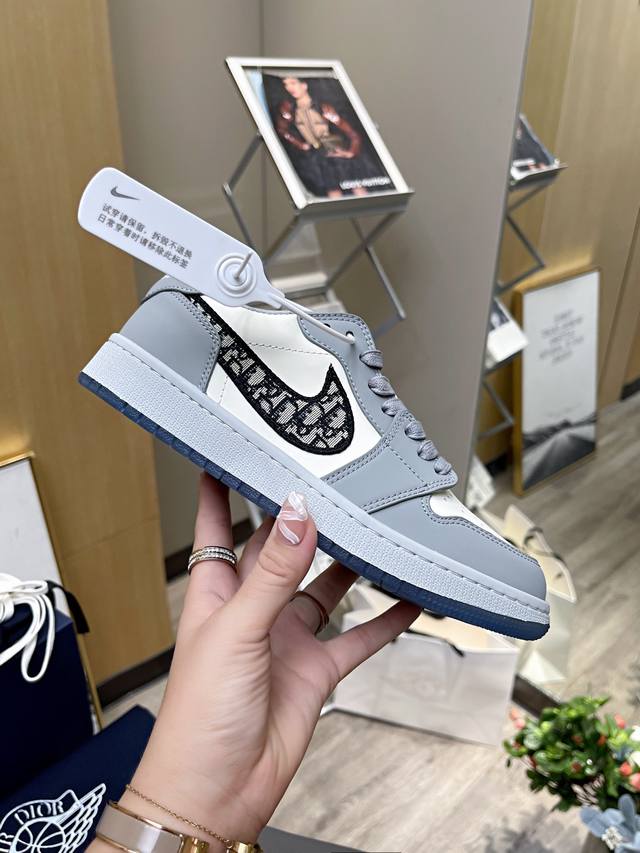 顶级版本耐克air Jordan 1 High Og Dior“迪奥联名”Aj1限量款,全新联名款选择了air Jordan1High为基底打造,选择白色与深灰色拼接呈现鞋身。而鞋侧的nikeswoosh则以黑色刺绣镶边,并满幅点缀有dior字母印花。鞋舌整体也压印有dior字母印花,凸显细节。而最为显眼的设计则出现在外底,醒目的蓝色水晶大底内可以透视出黑色的dior与logo,字样彰显联名身份。